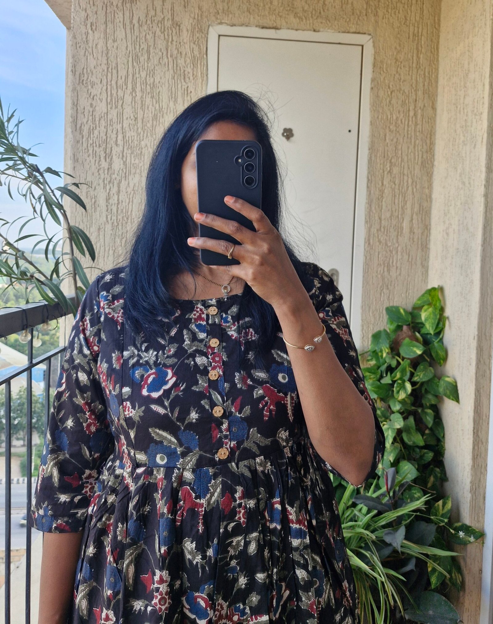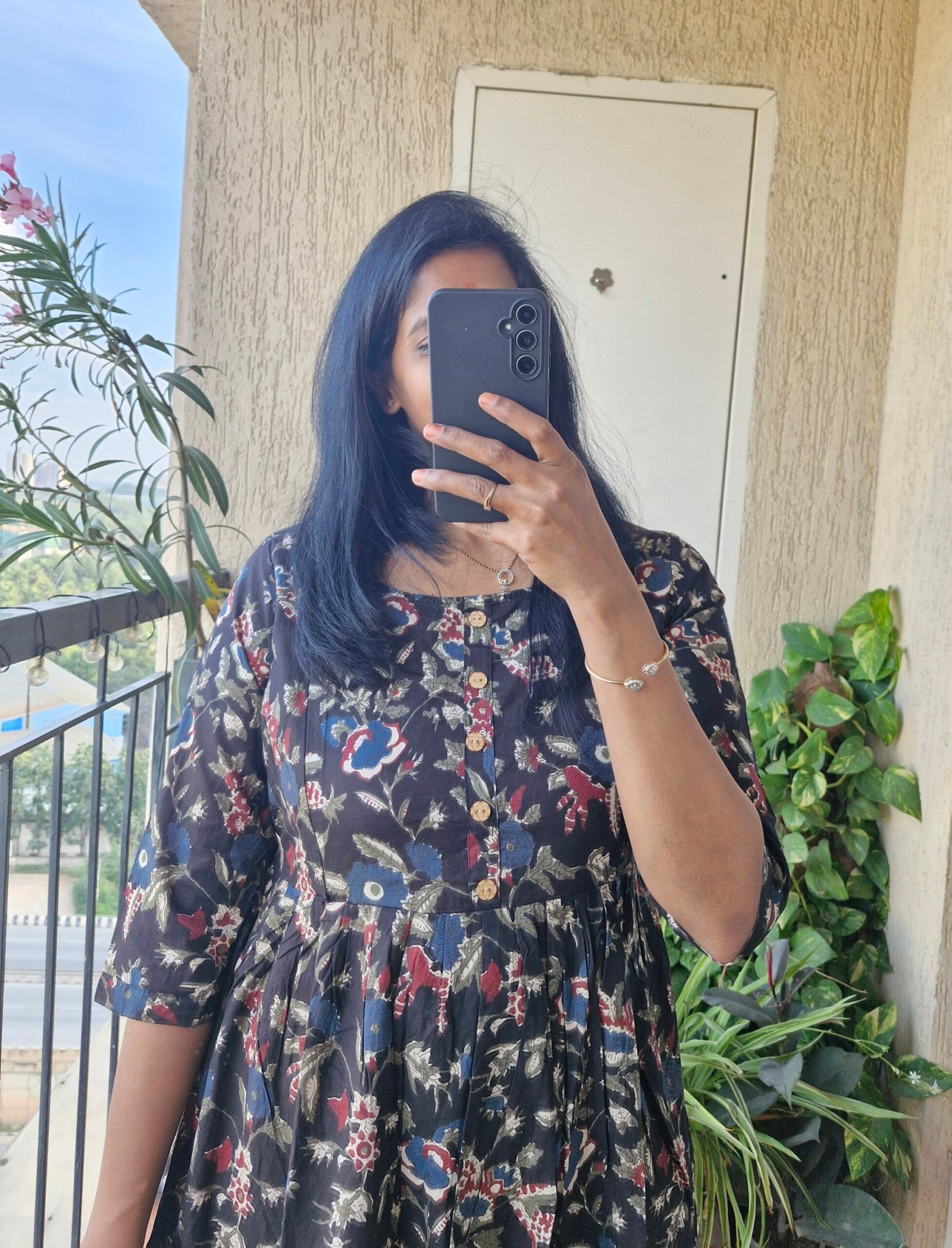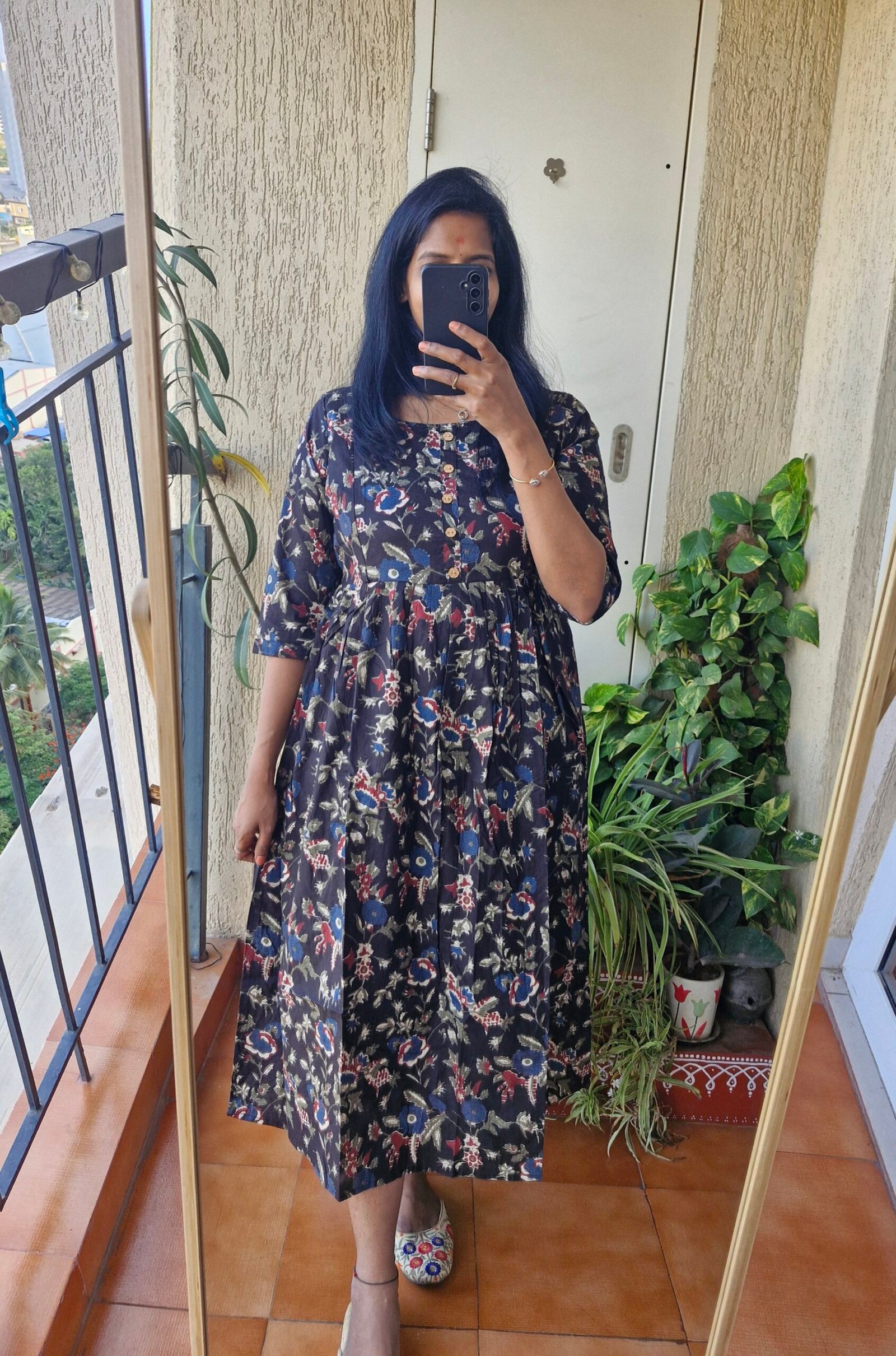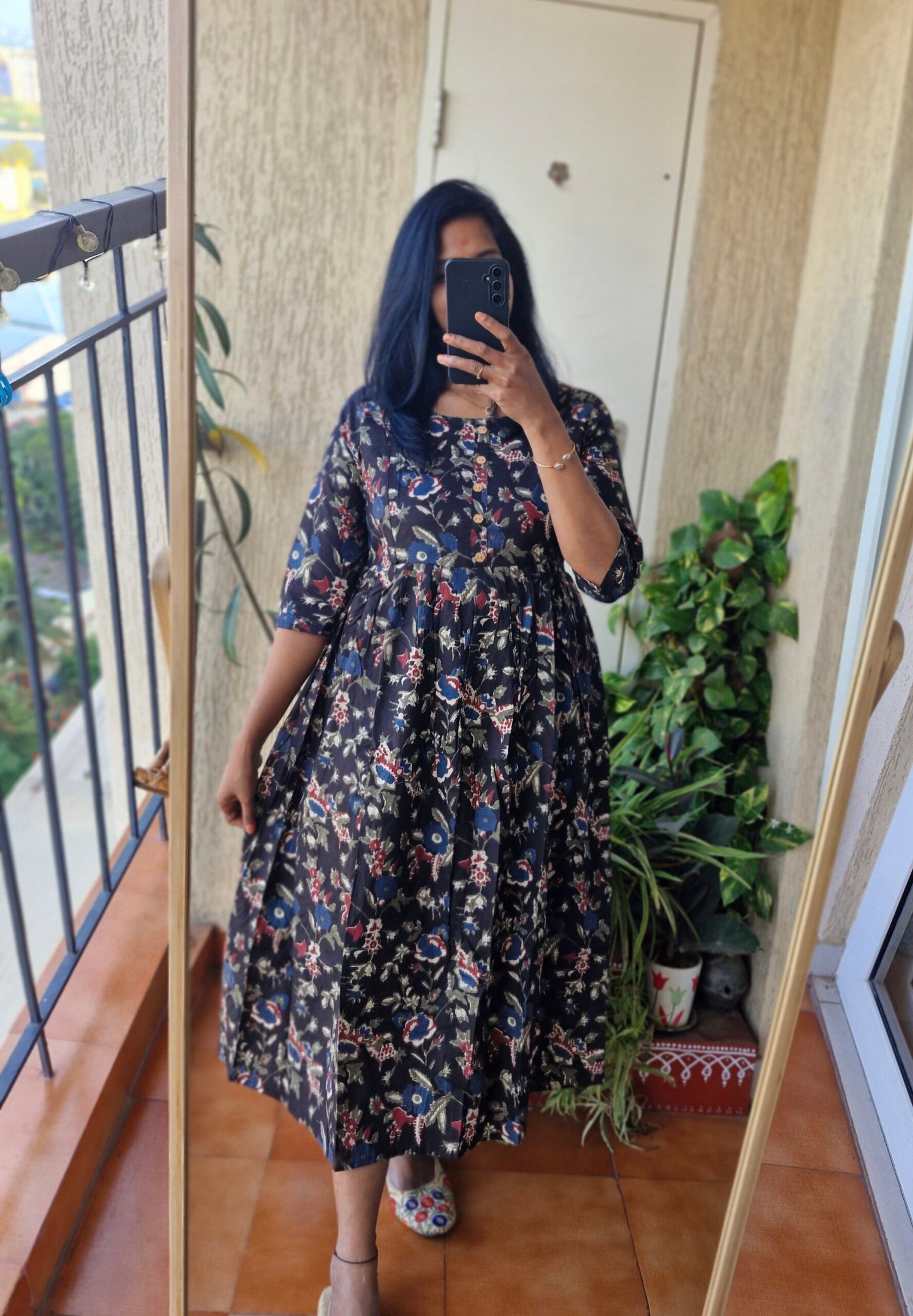 Beautiful Black Floral feeding dress comes with two soft zippers and the zippers are neatly enclosed inside comes with a bavk tieup. Length 0f the dress is 46 inches.