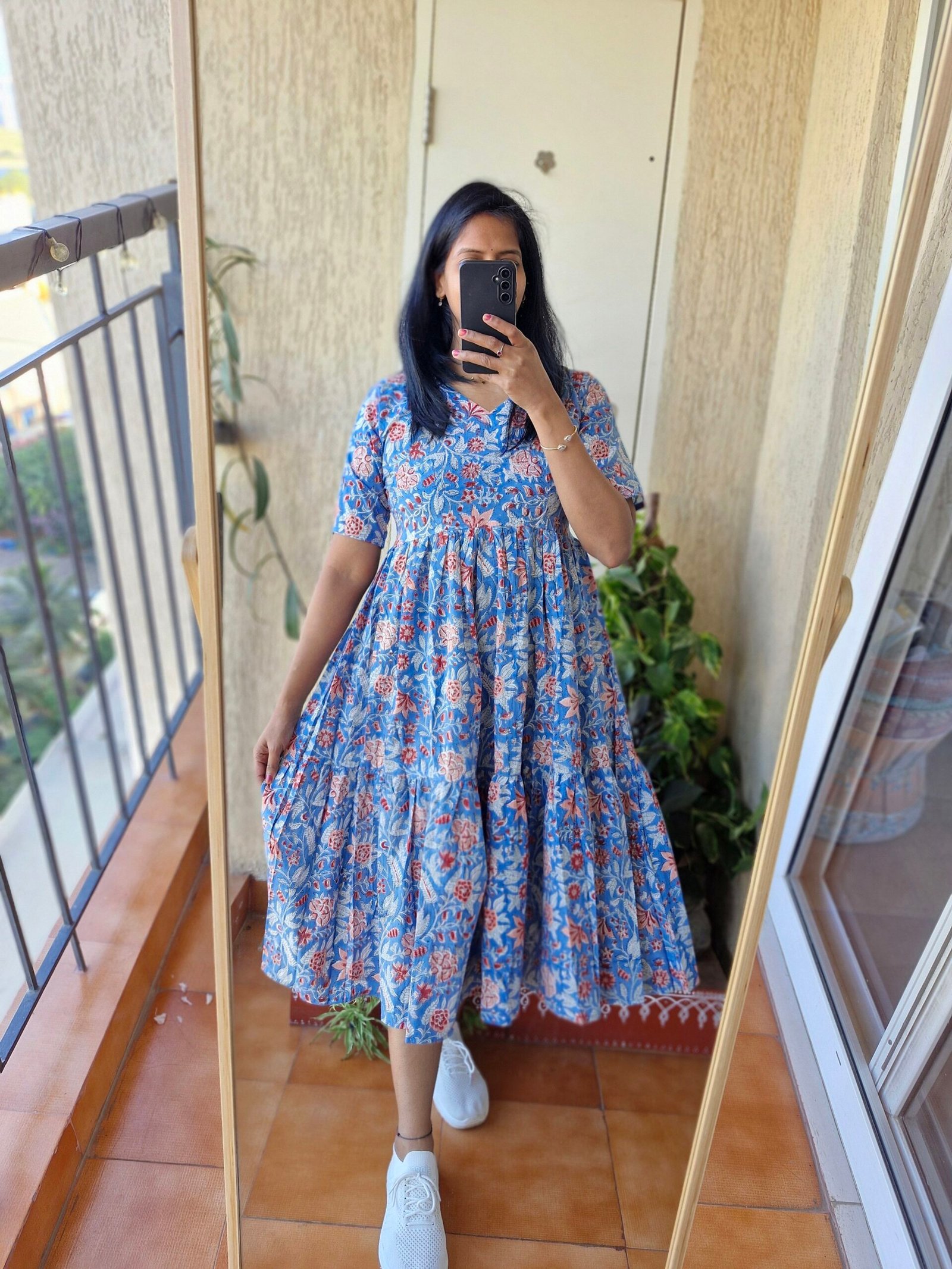 Blue floral bagru blockprint cotton dressBlue floral bagru blockprint cotton dress
