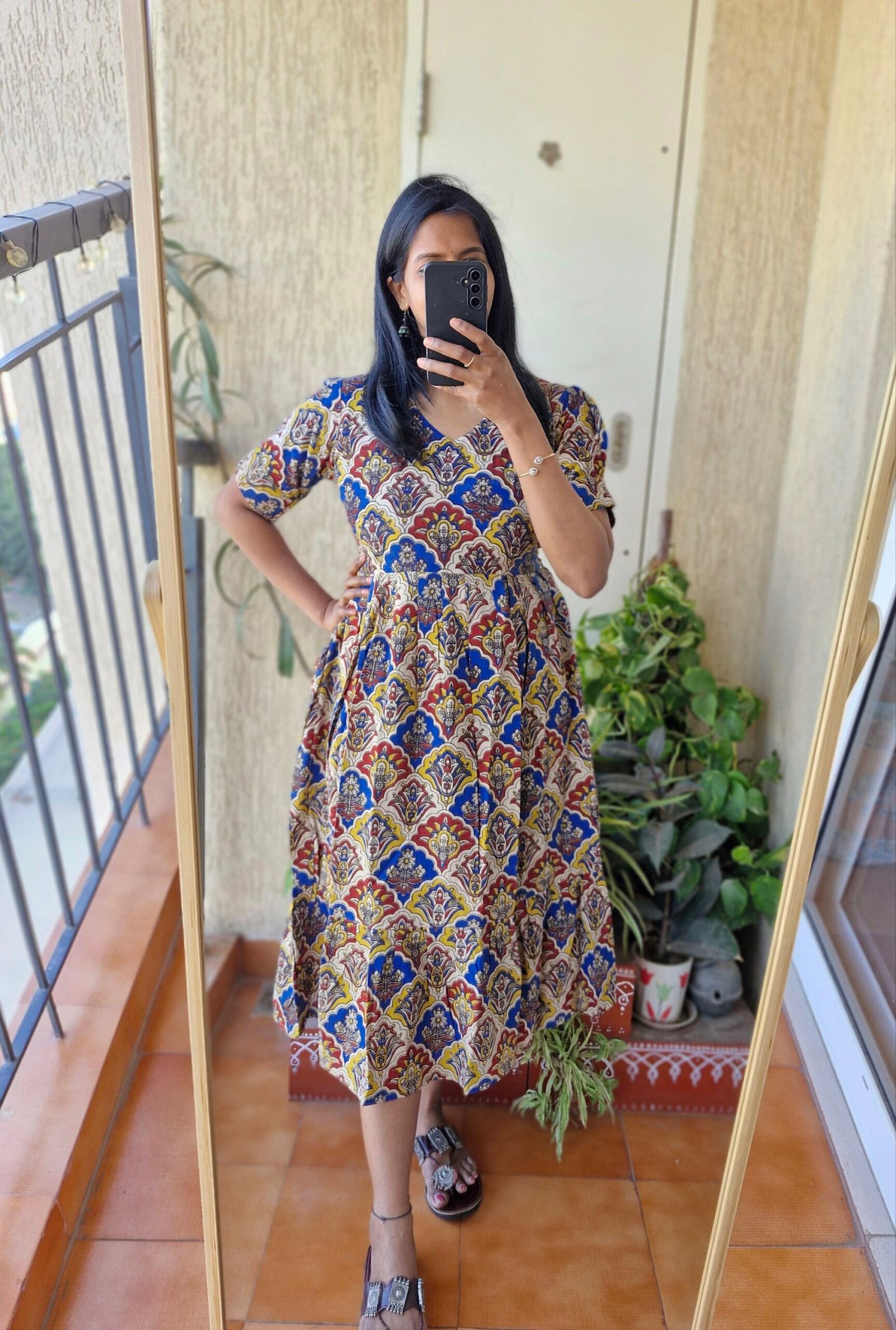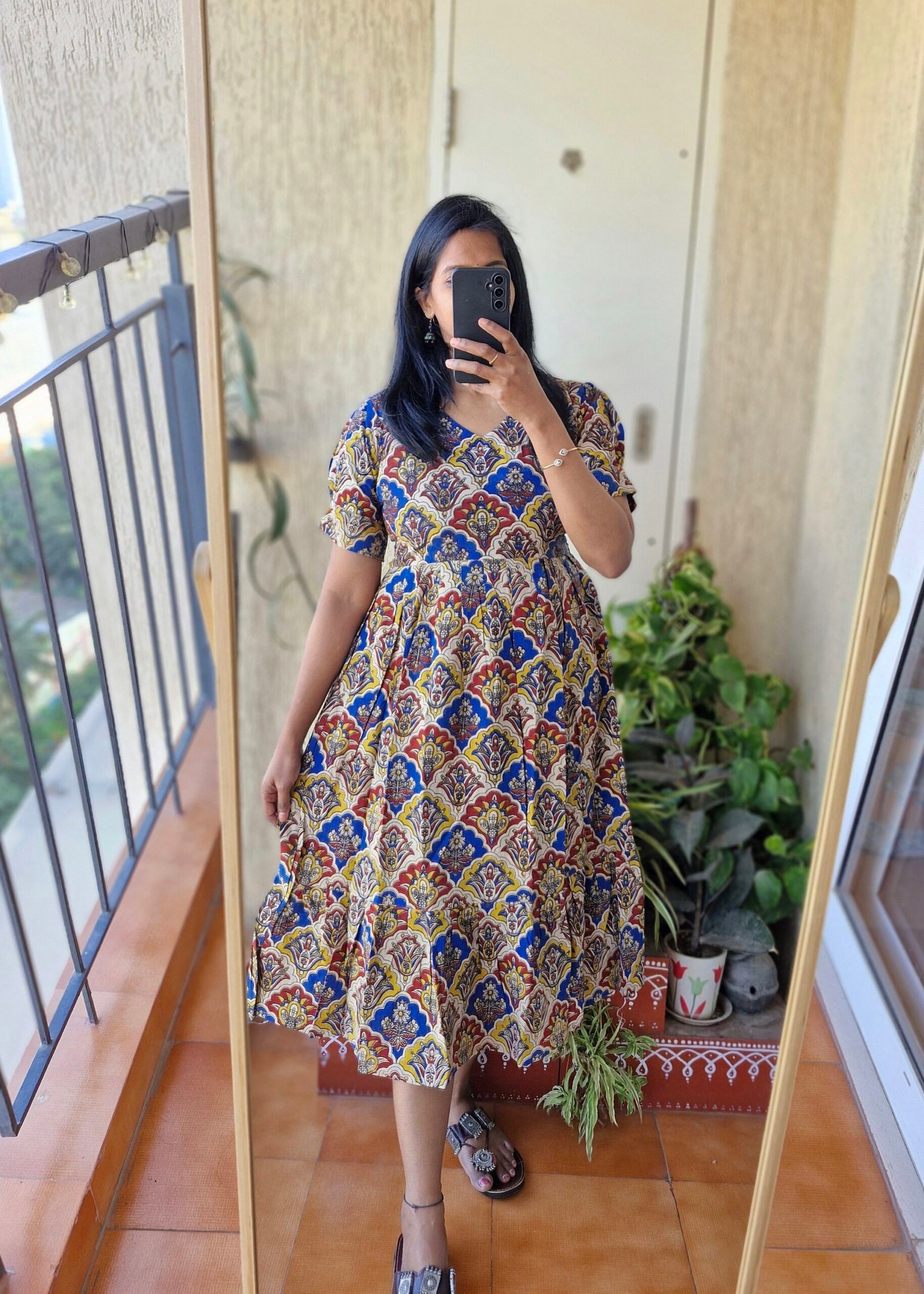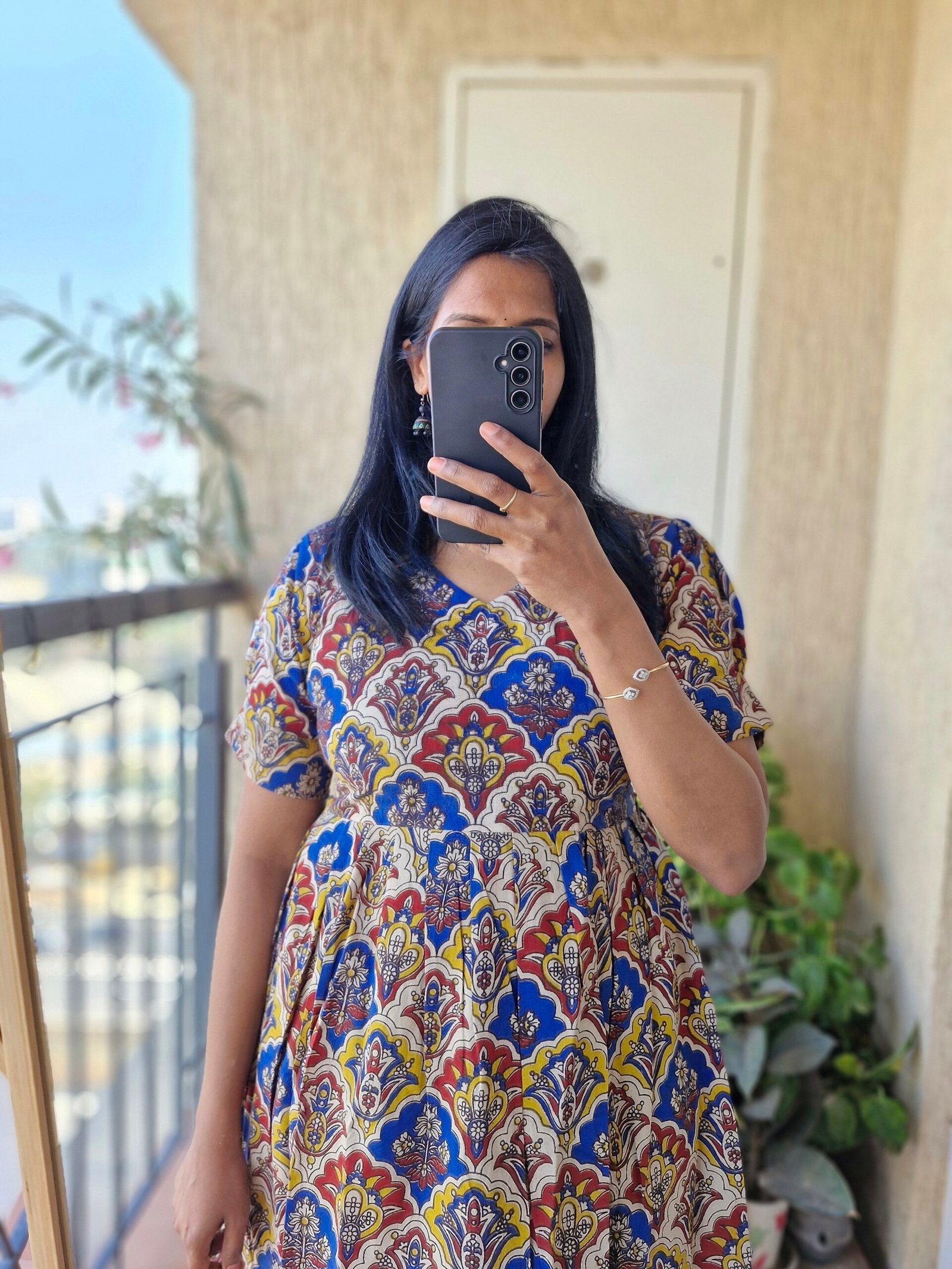 Cute Kalamkaari dress comes with a length of 44 inches has a back tieups .Can be styled as a frock or pair it with a jean or jegging to give a kurti look.This runsexact to size so if you are exact 38 choose one size up less than 38 go with 38 only.