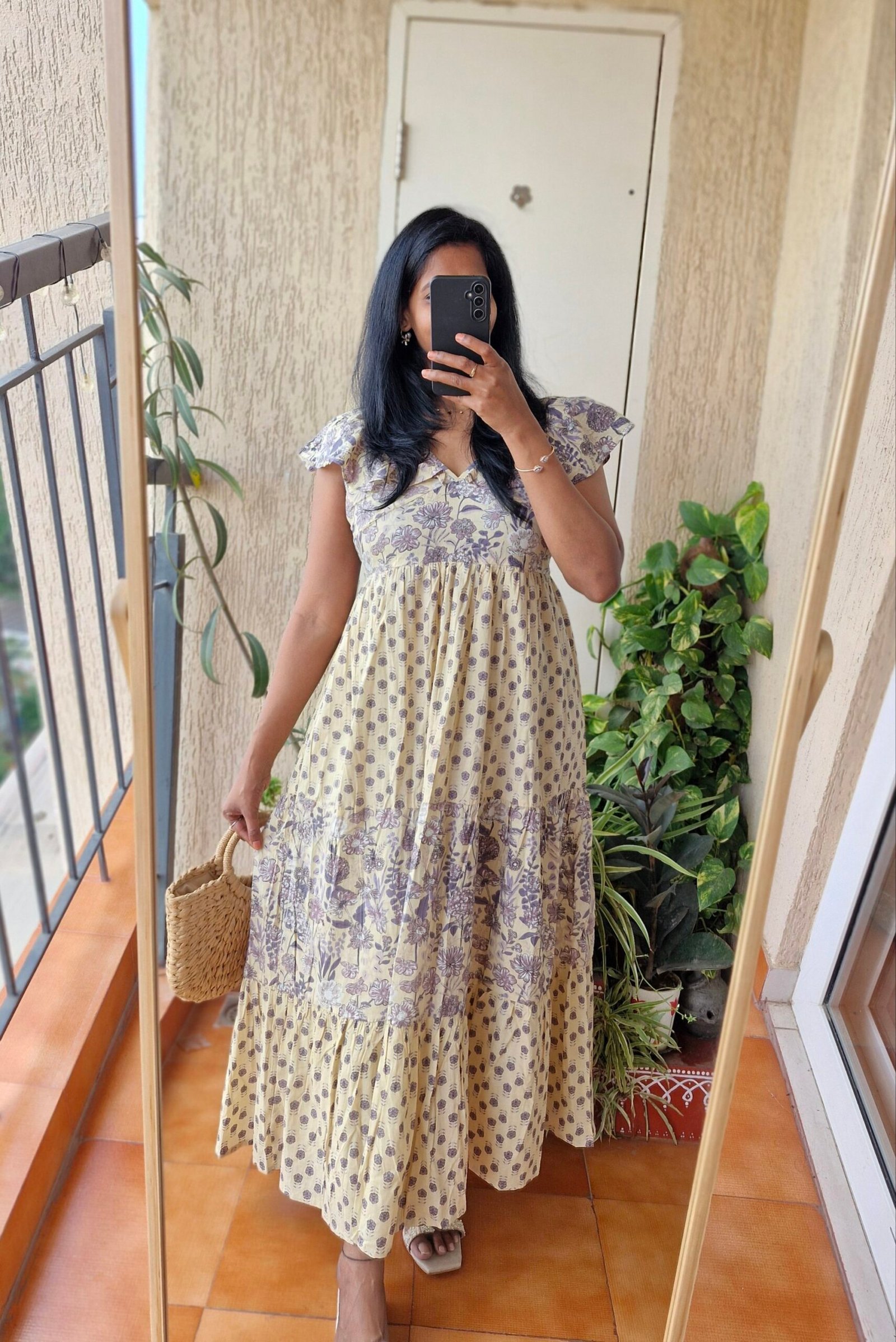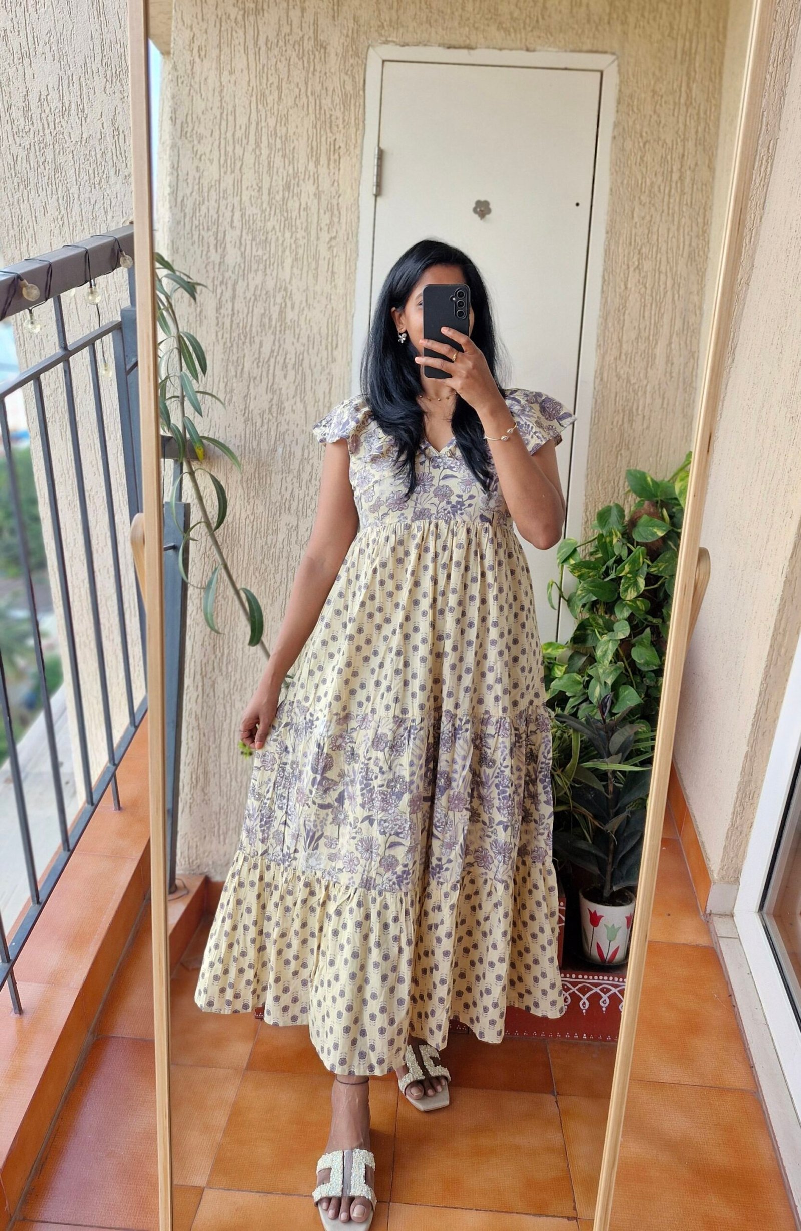 Beautiful Cream/purple block print cotton dress perfect go to vacay/brunch dress at a super budget friendly price .Comes with a length of 53 inches.