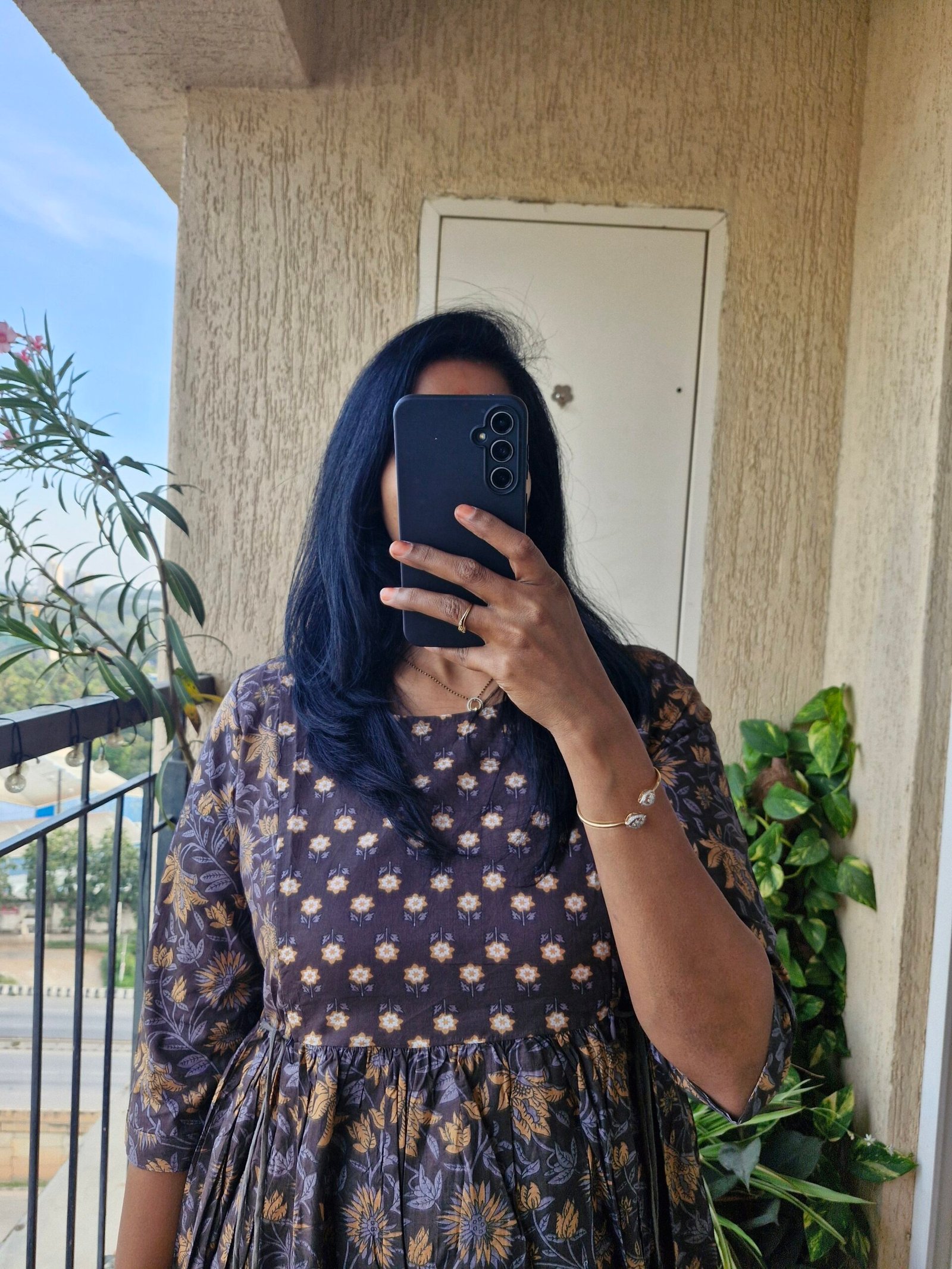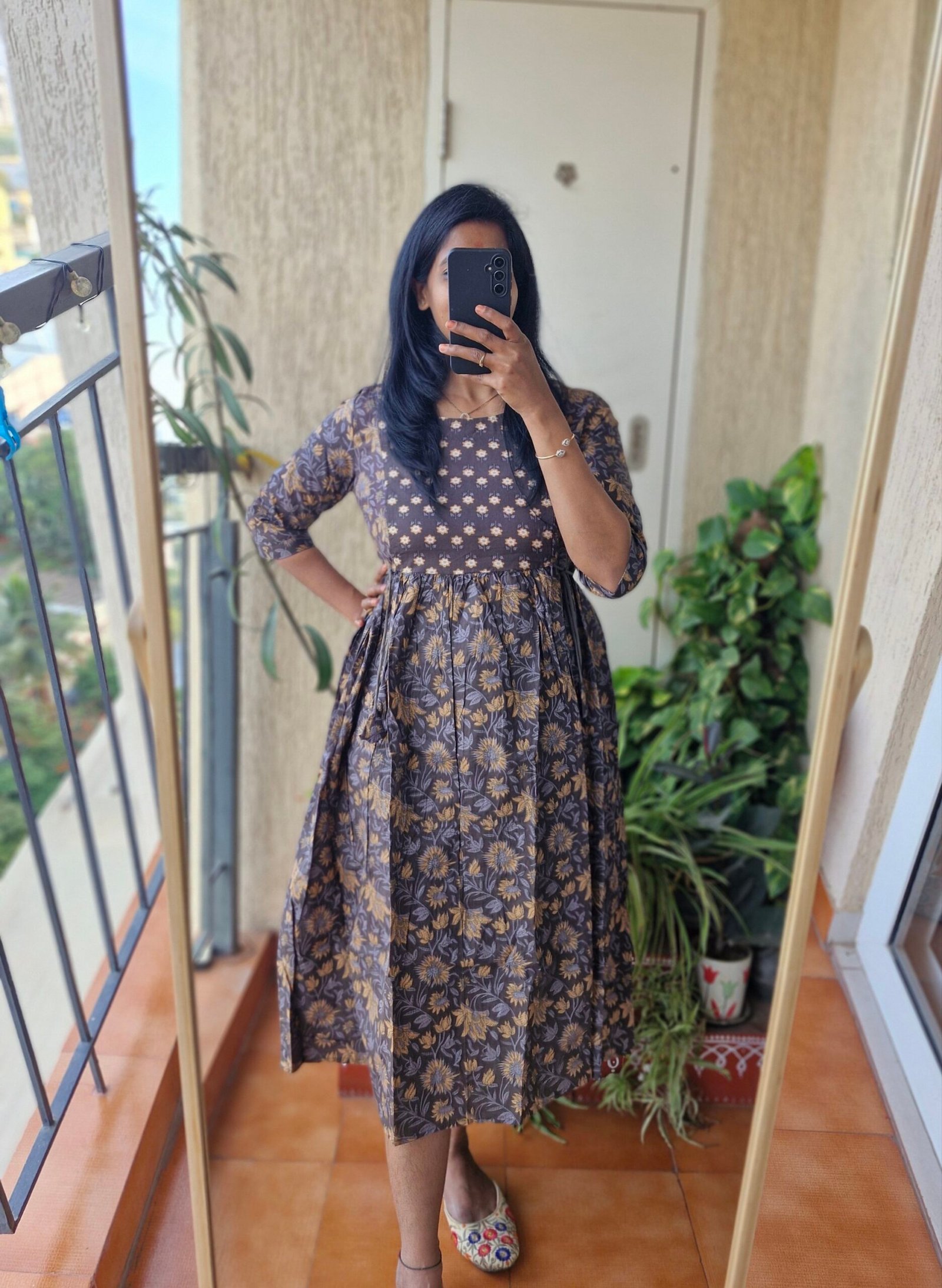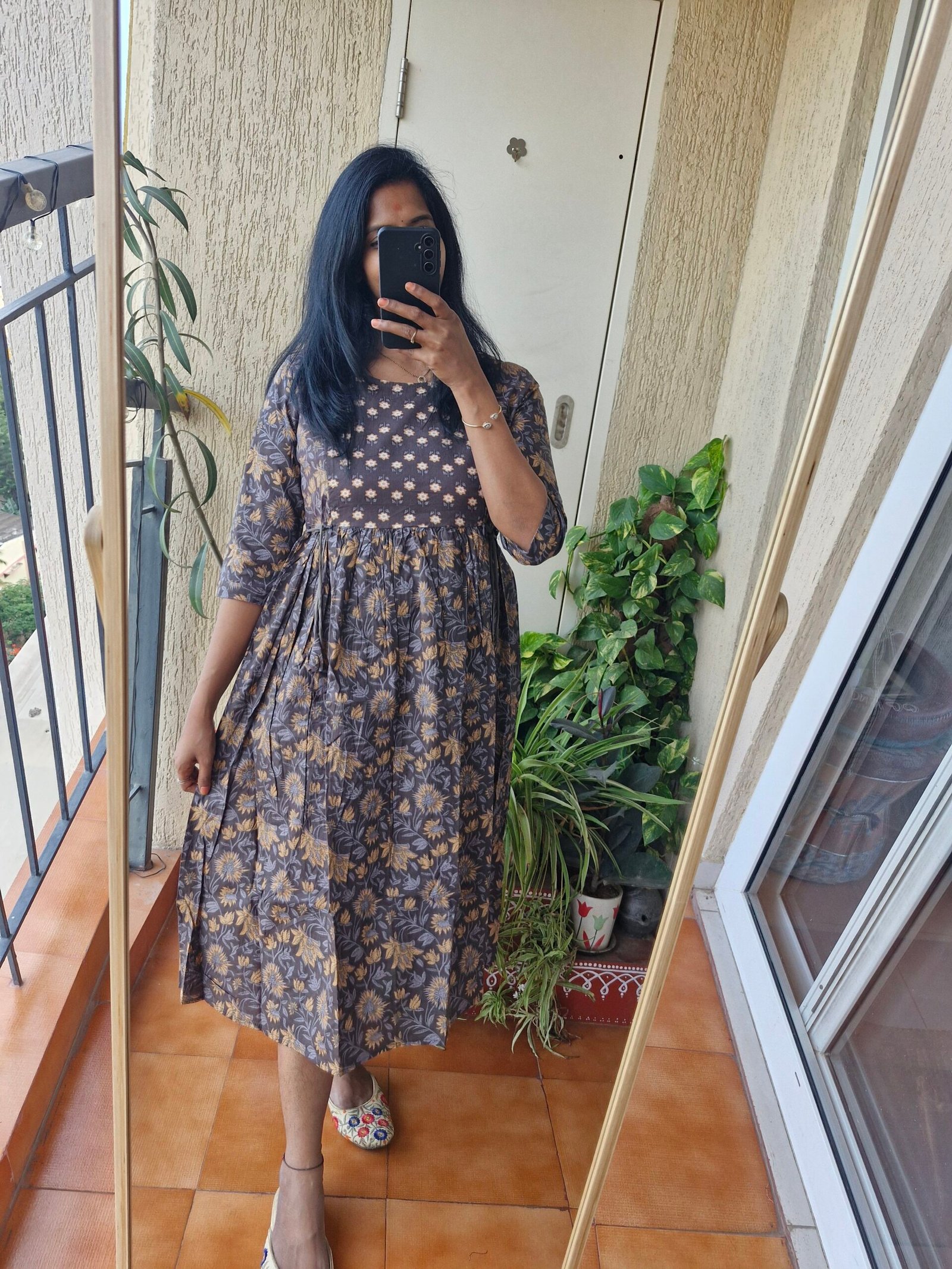 Dark Grey floral cotton Feeding dress.Dark Grey floral cotton Feeding dress.