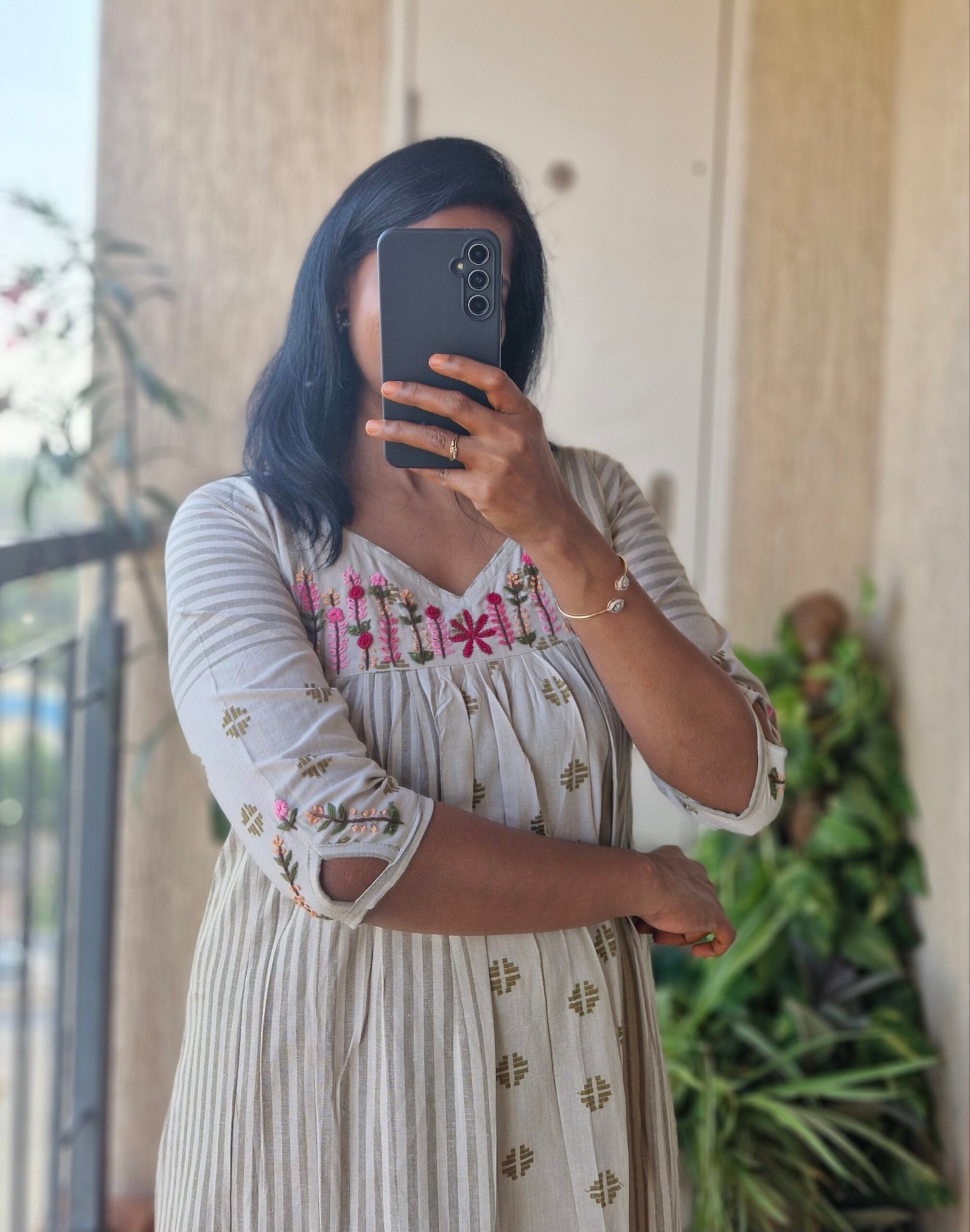 Jamdhani  beige green embroidery kurtaJamdhani beige green embroidery kurta