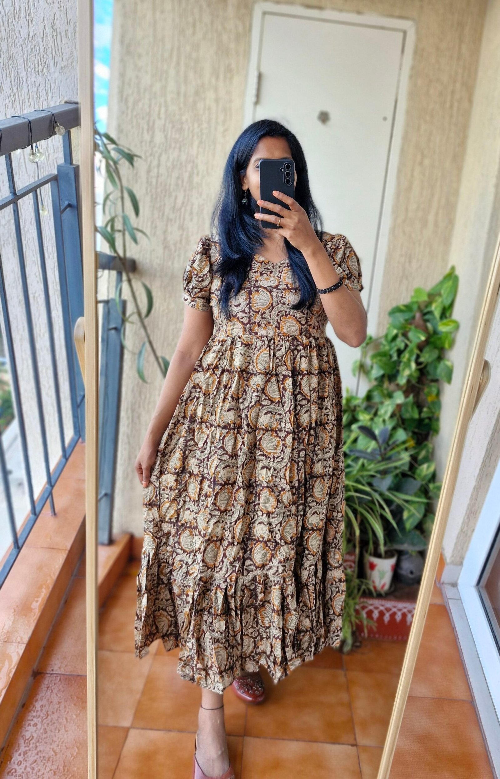 Be the first to review “Kalamkaari brown floral cotton dress.”