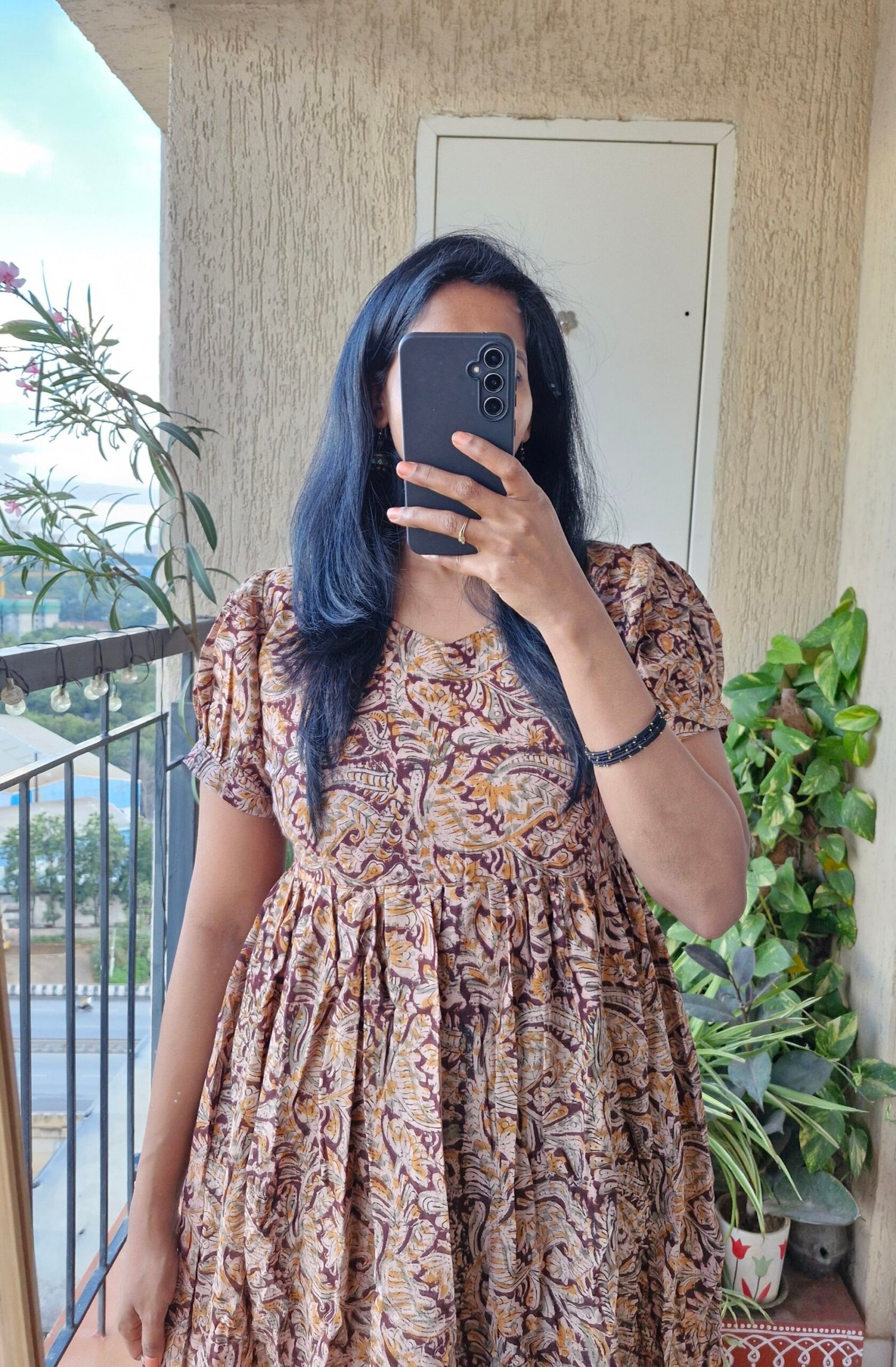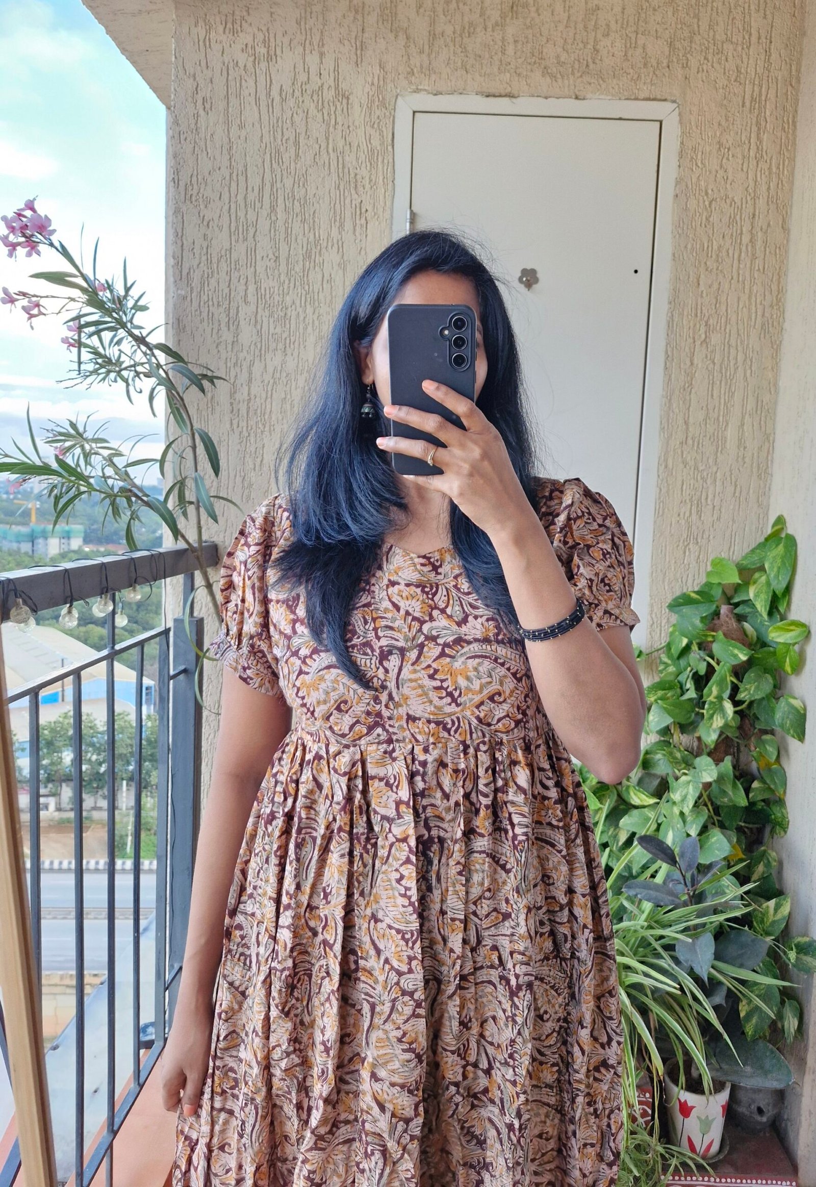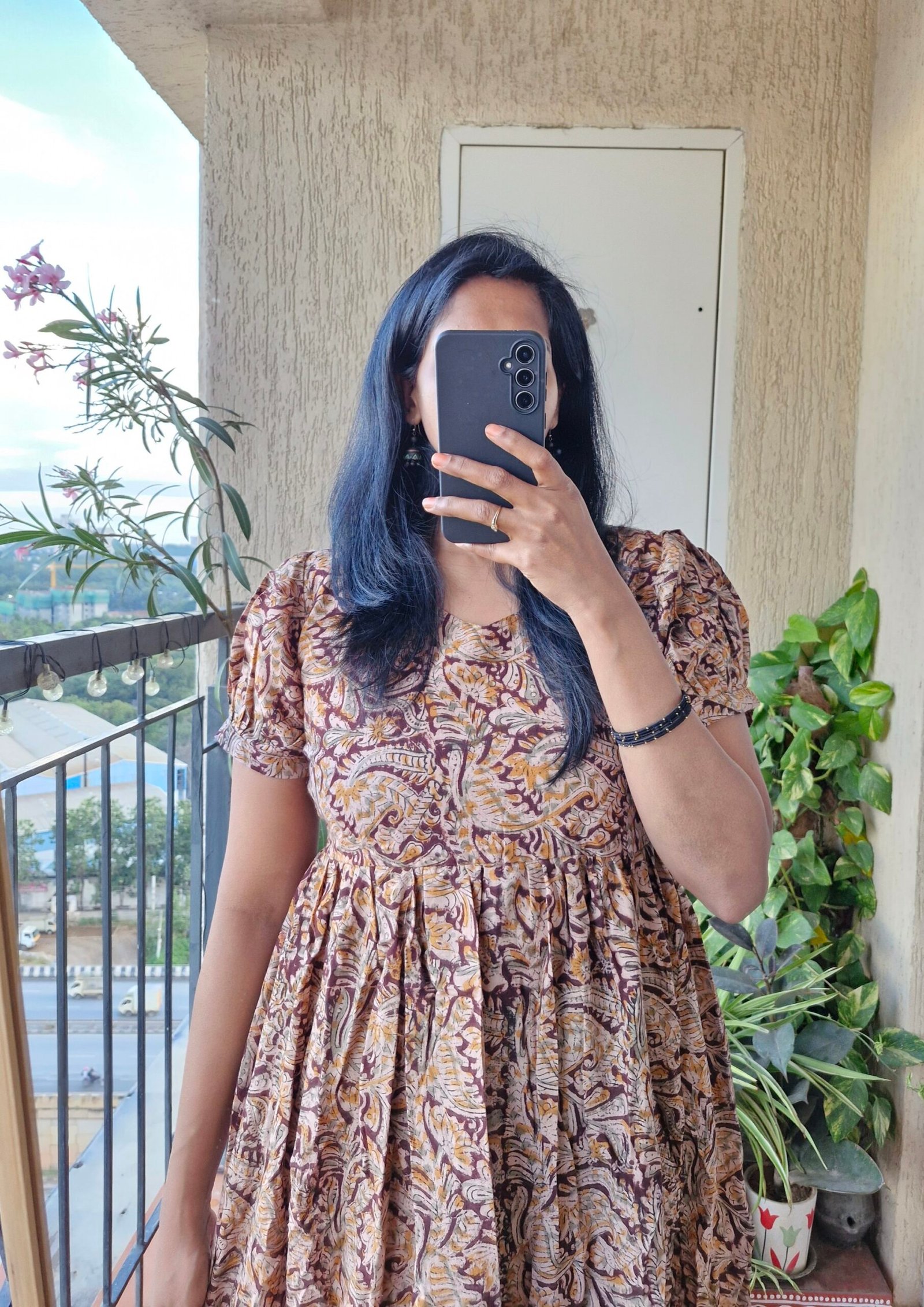 Kalamkaari maroon floral cotton dress.Kalamkaari maroon floral cotton dress.