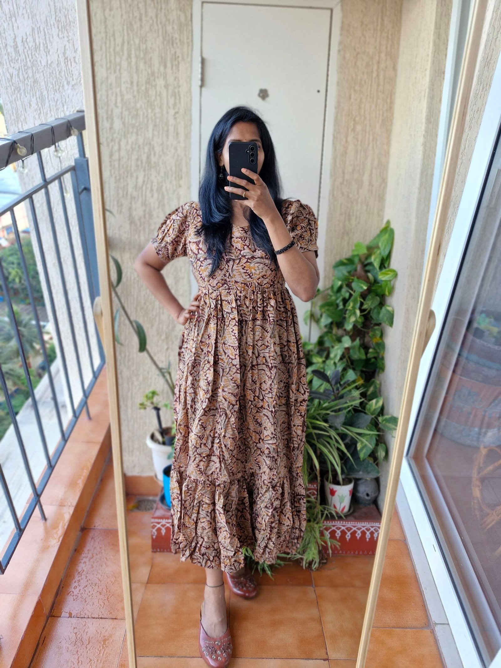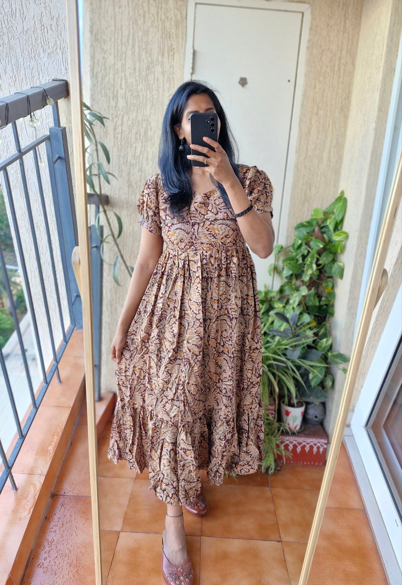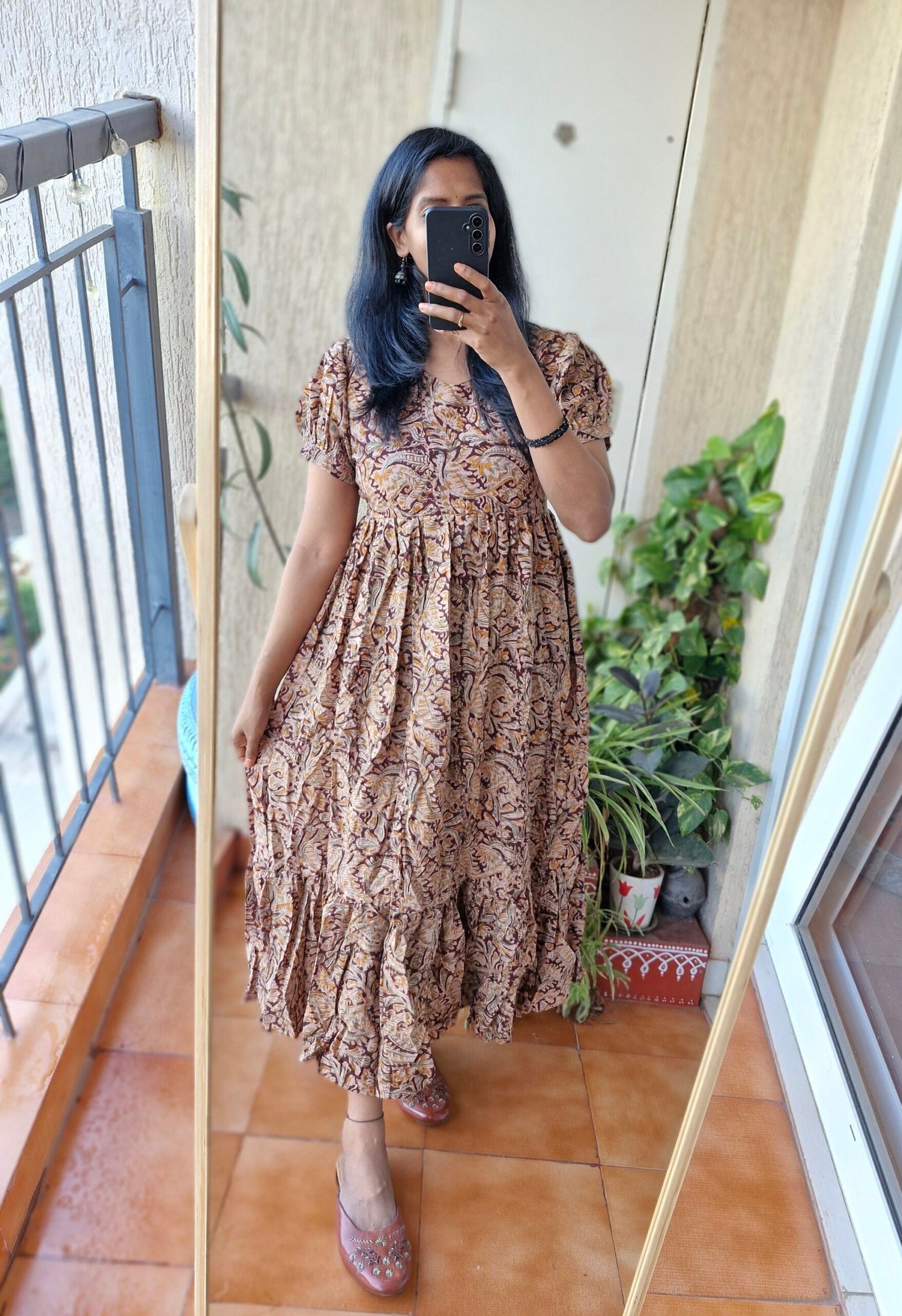 Kalamkaari maroon floral cotton dress.Kalamkaari maroon floral cotton dress.