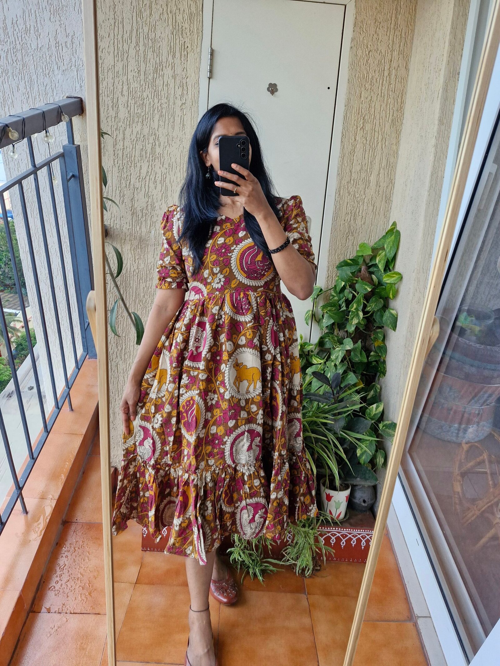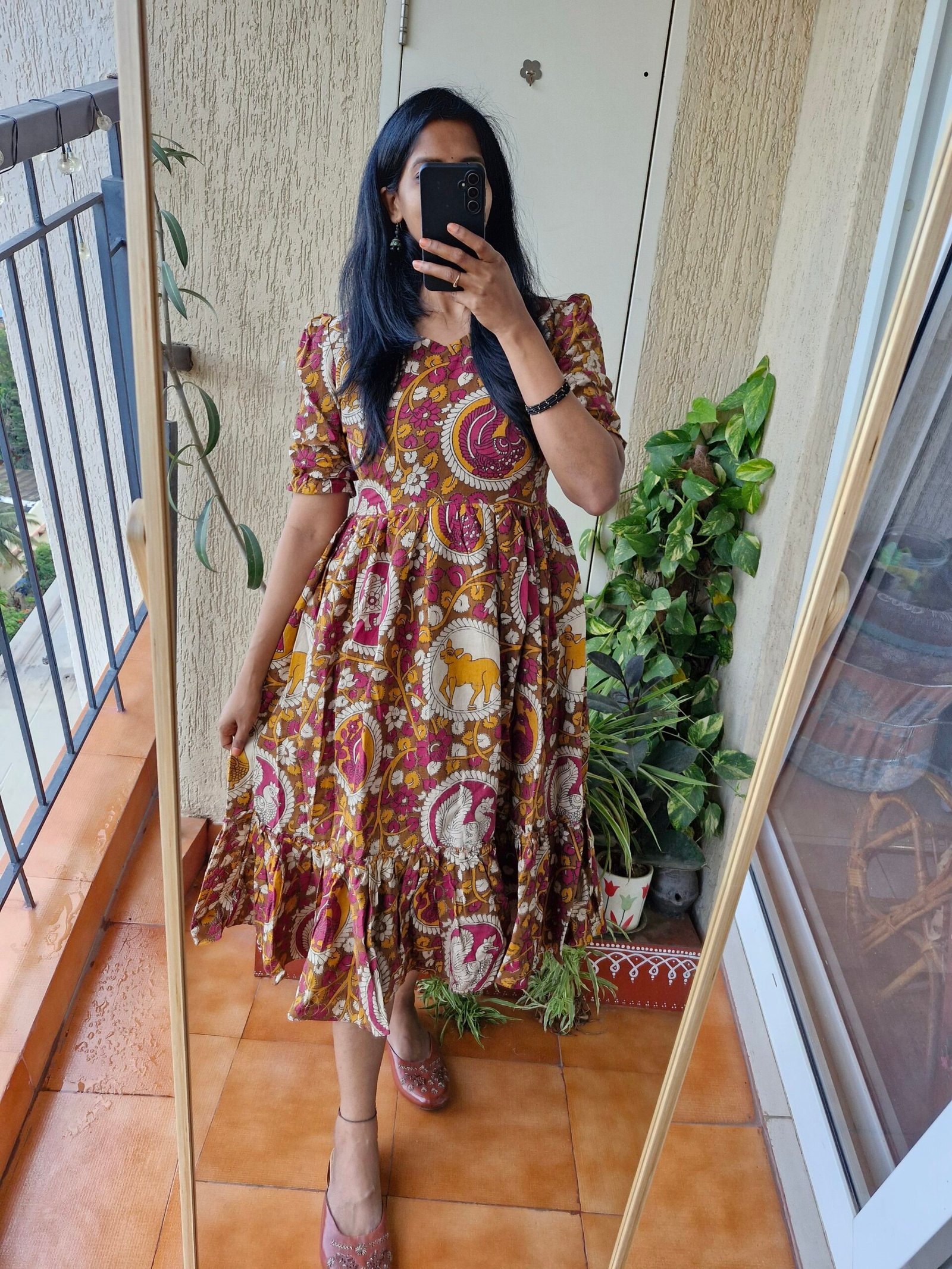 Kalamkaati orange cotton dress.