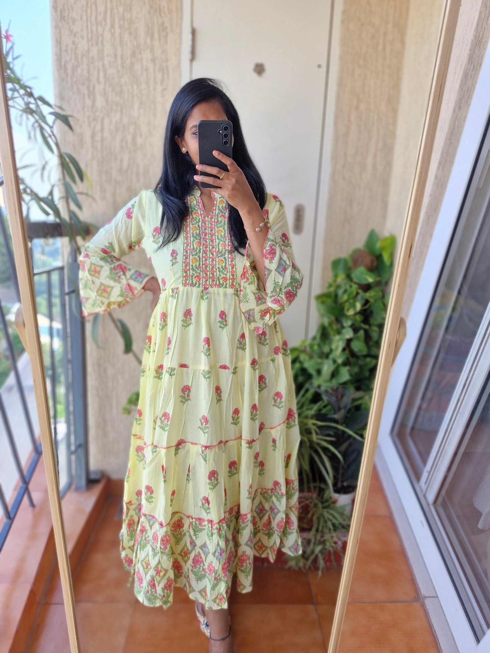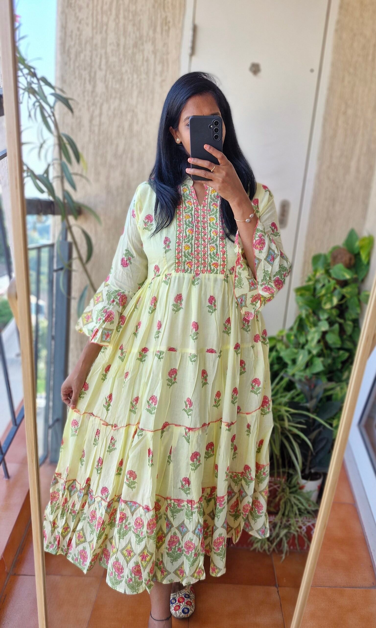 Lemon yellow mul cotton dress.Lemon yellow mul cotton dress.