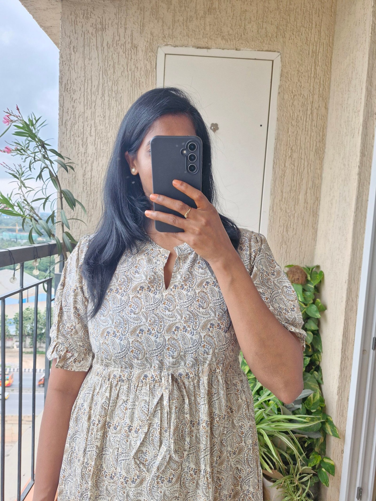 Beautiful Paisley cream cotton dress come tunic with adjustable waist can be worn just like a dress or pair with a legging or a Jean.Length of the dress is 40 inches.