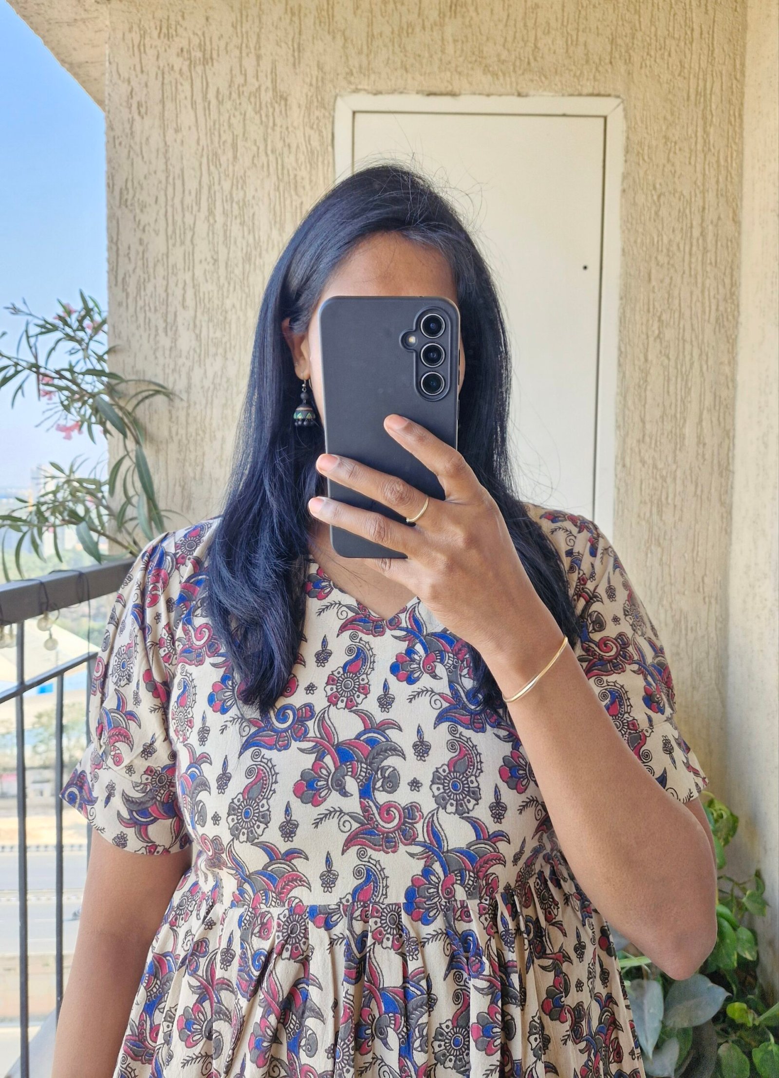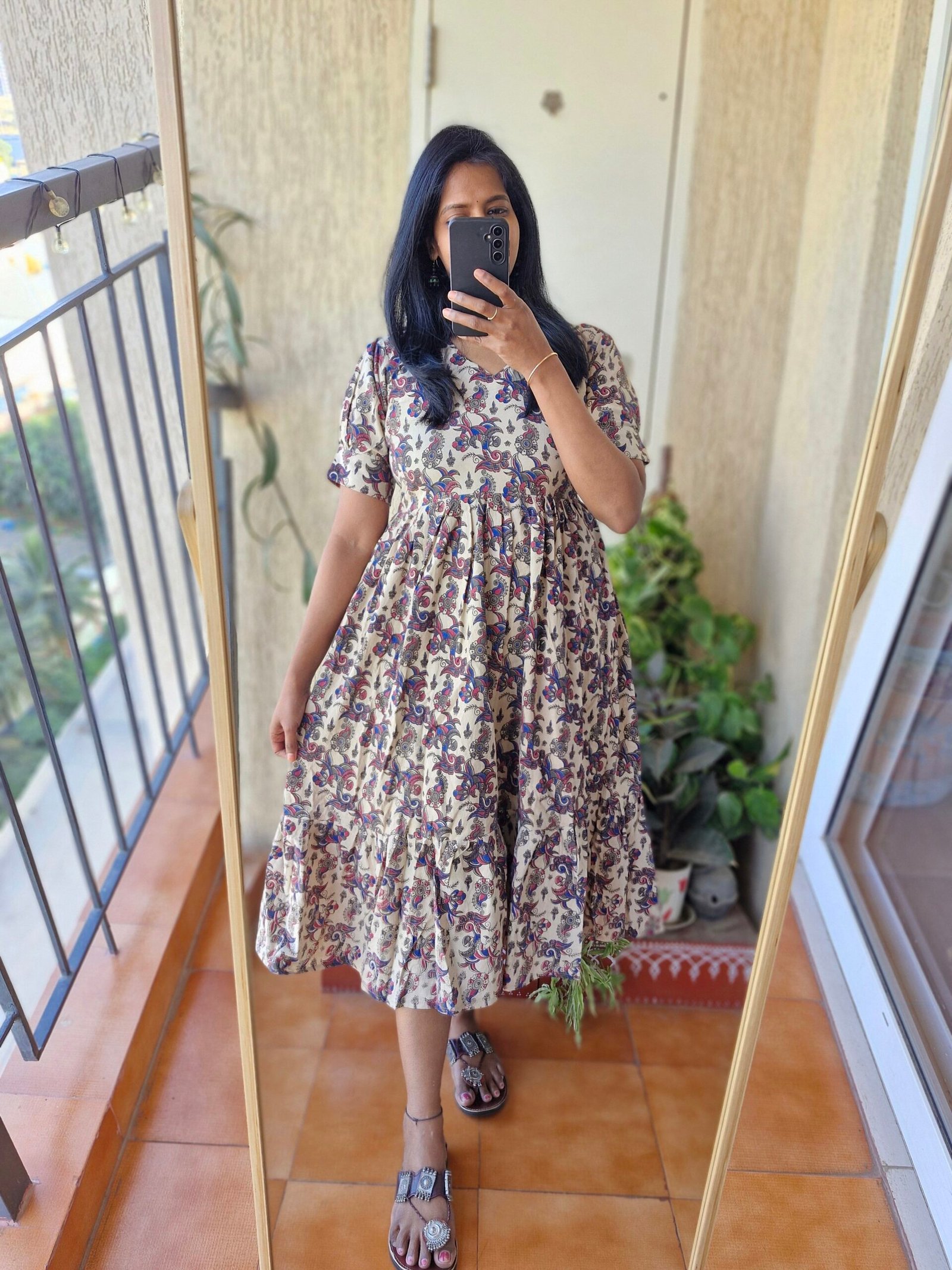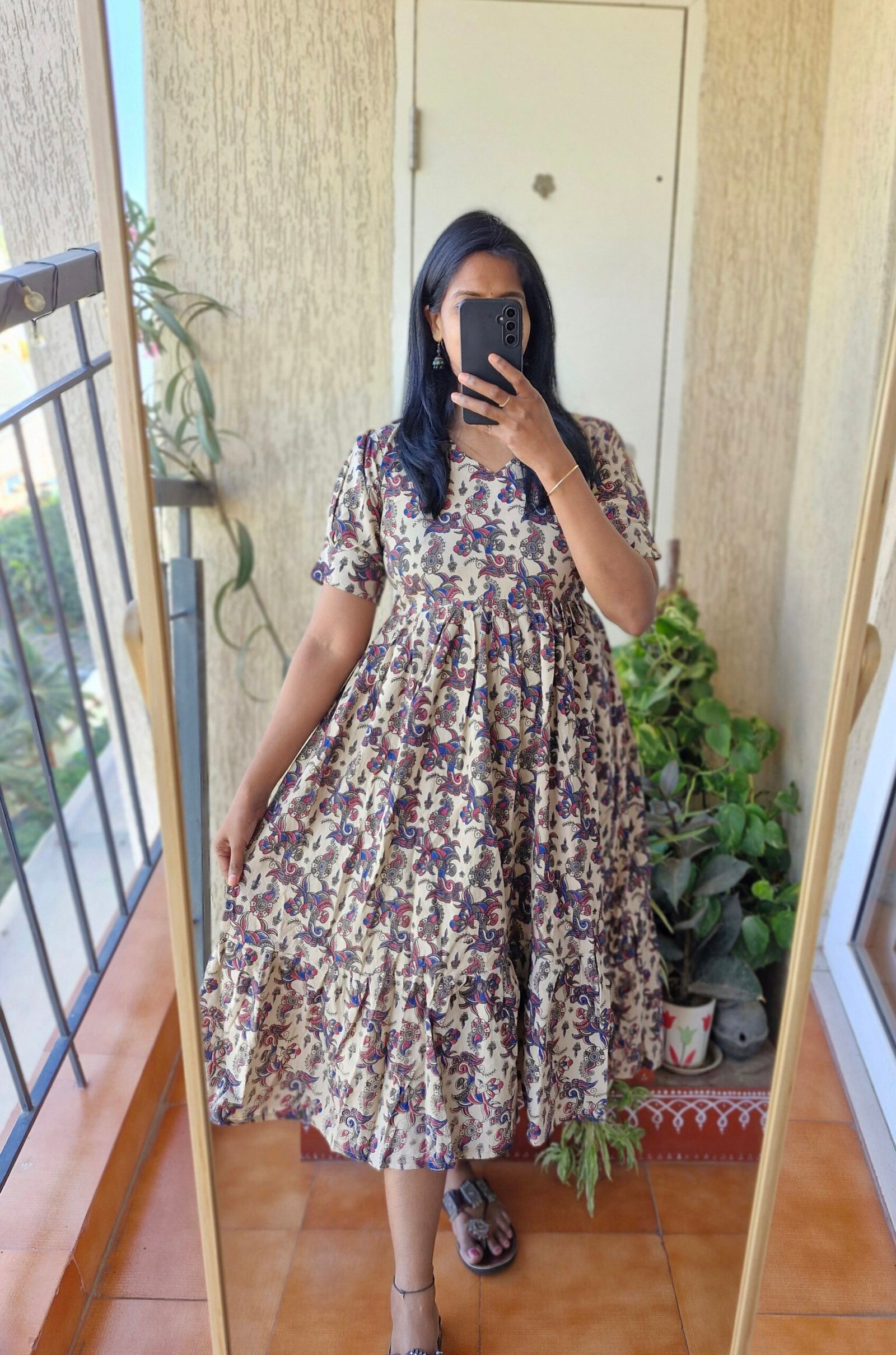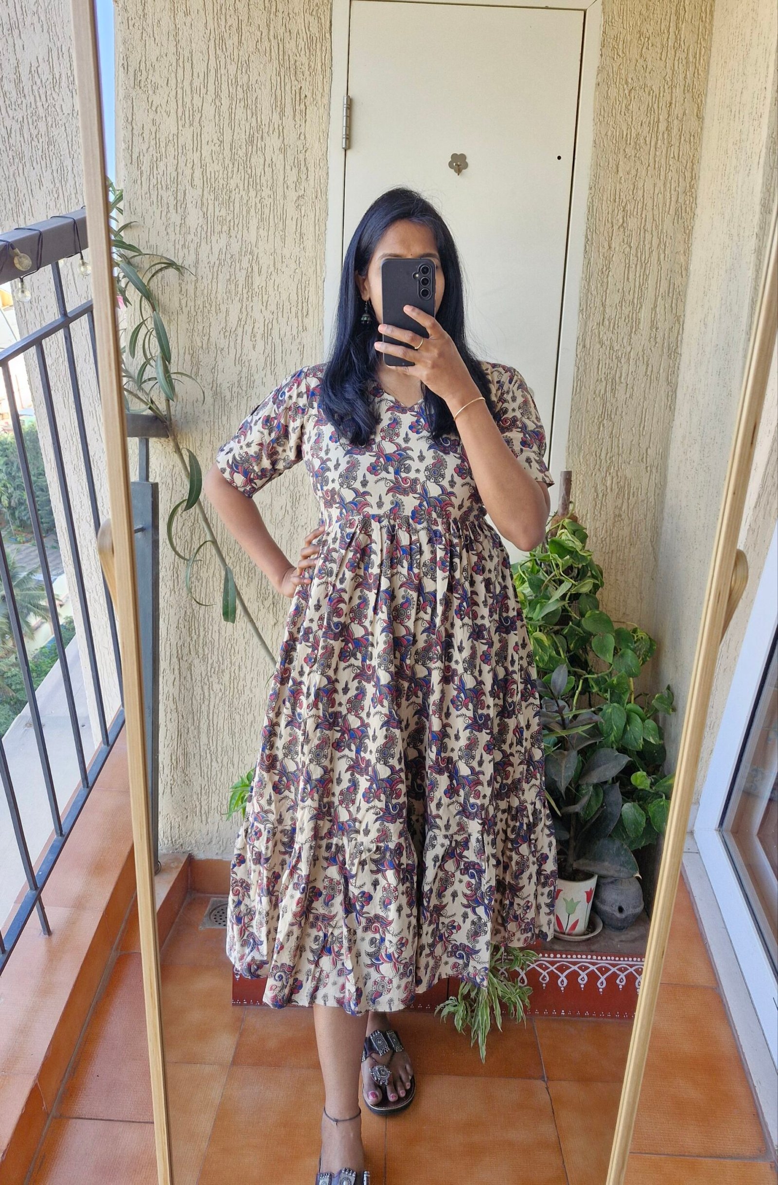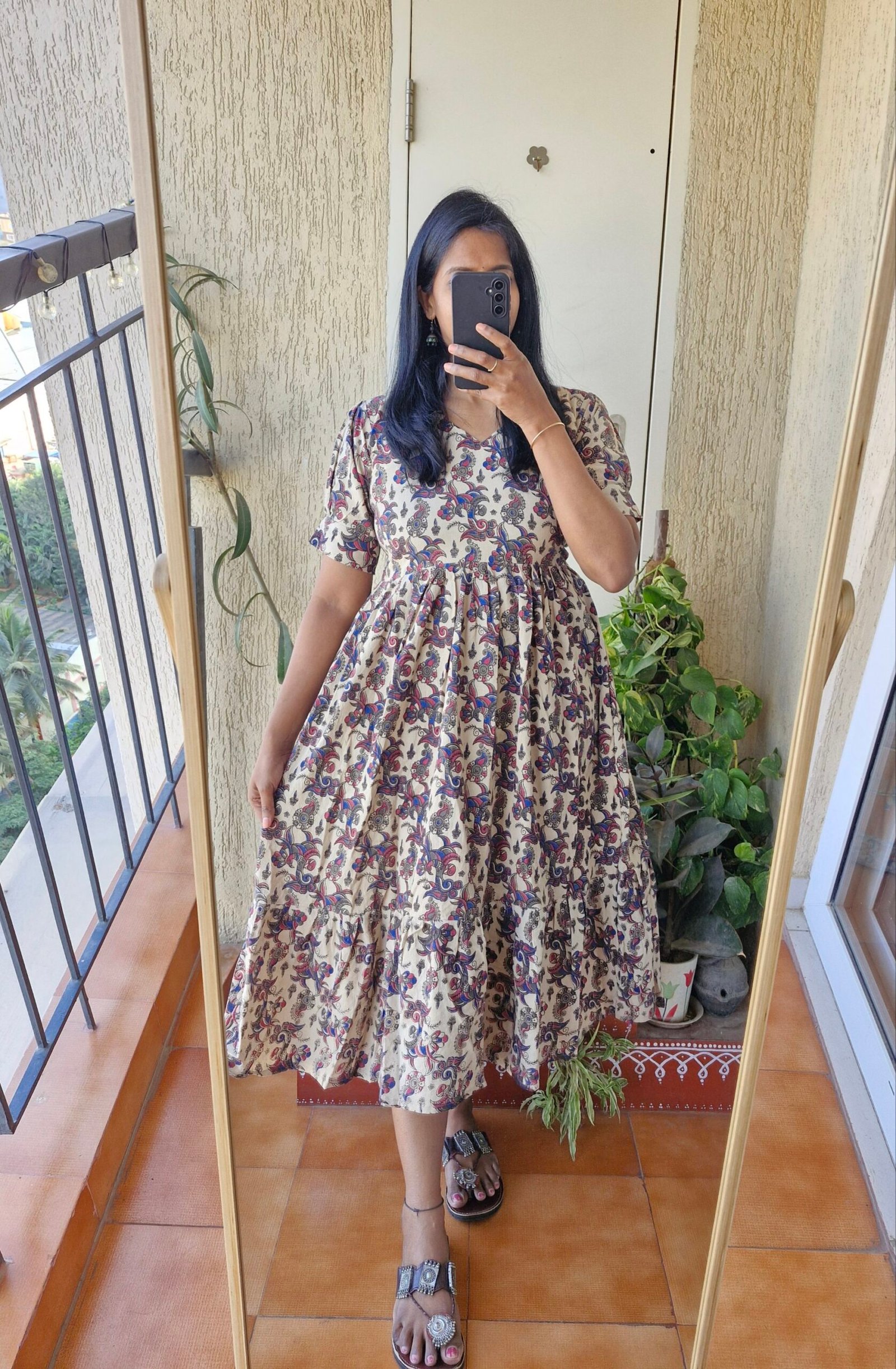 Cute Kalamkaari dress comes with a length of 46 inches has a back tieups .Can be styled as a frock or pair it with a jean or jegging to give a kurti look.This runs exact to size so if you are exact 38 choose one size up less than 38 go with 38 only.