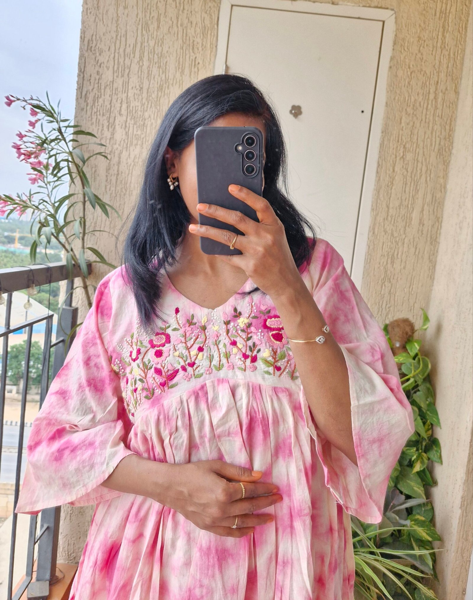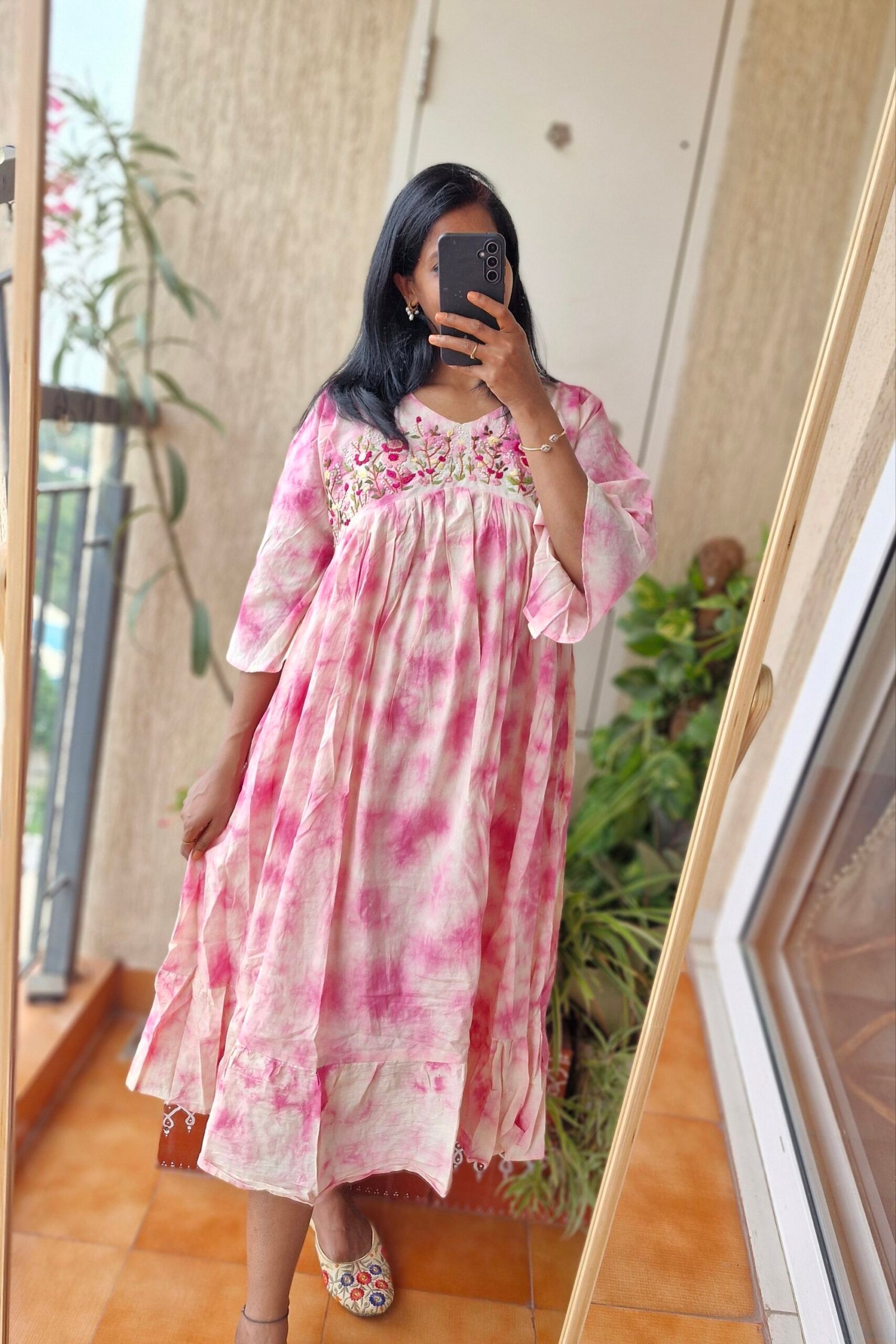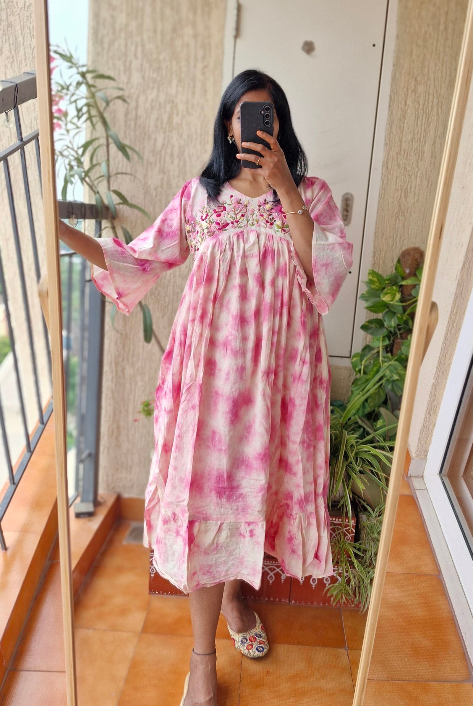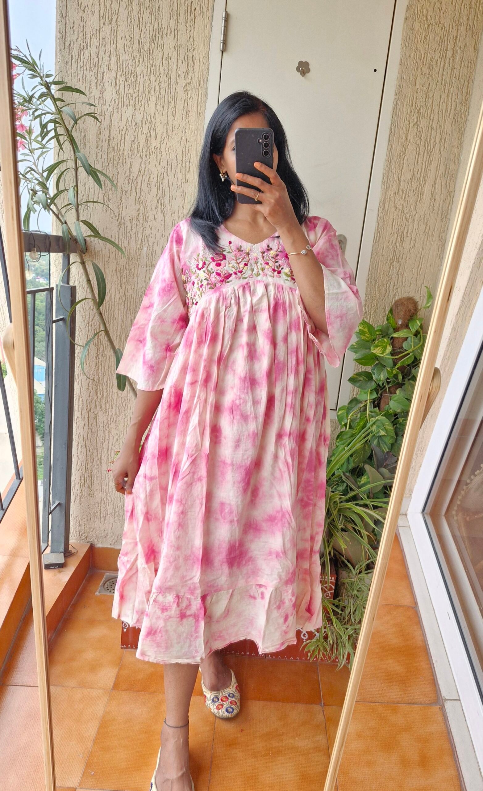 Pink tie and dye Mul cotton embroidery dress.Pink tie and dye Mul cotton embroidery dress.