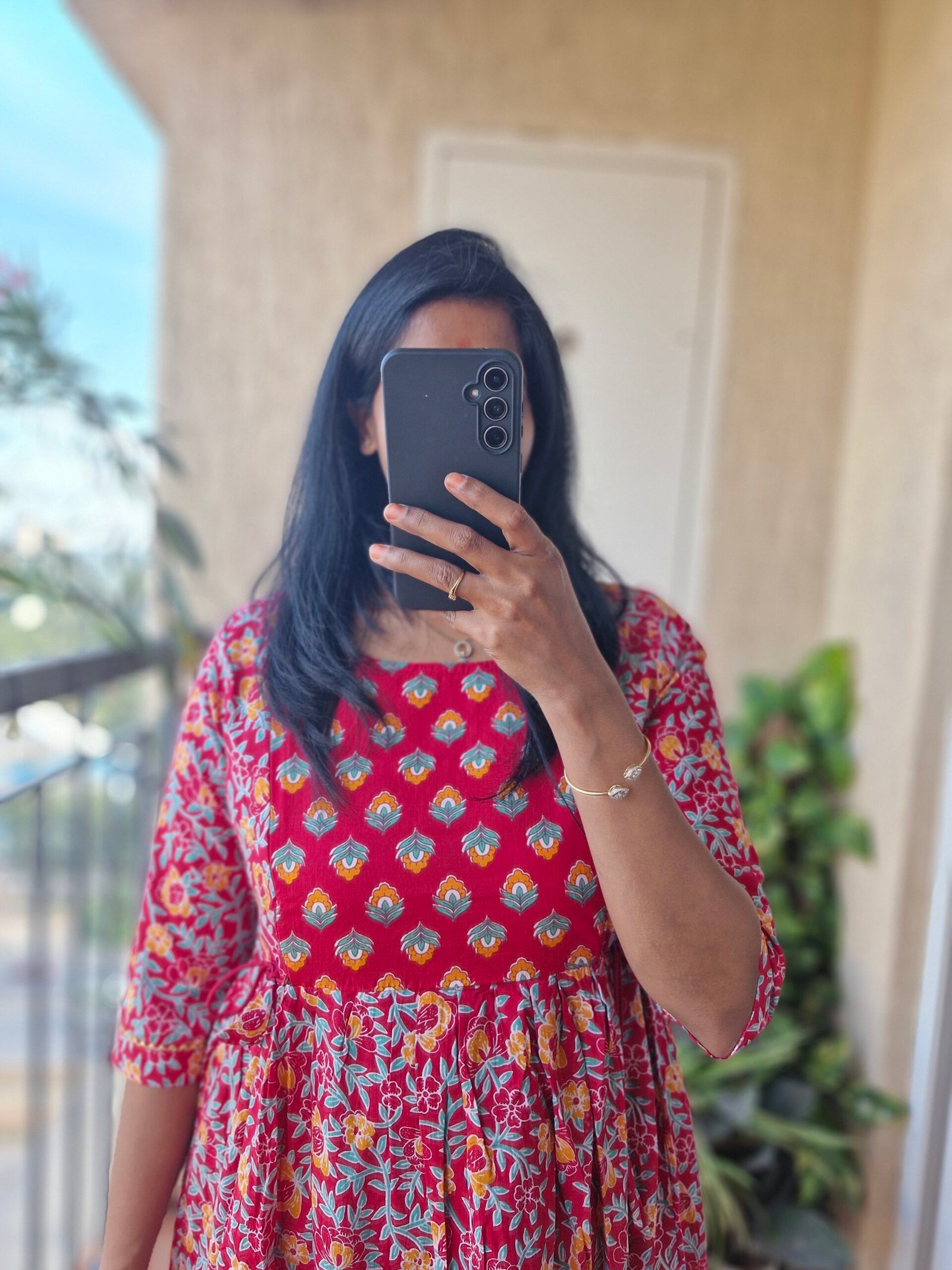 Beautiful Bright Pink& Red feeding dress comes with two soft zippers and the zippers are neatly enclosed inside comes with a adjustable tieups. Length 0f the dress is 46 inches.