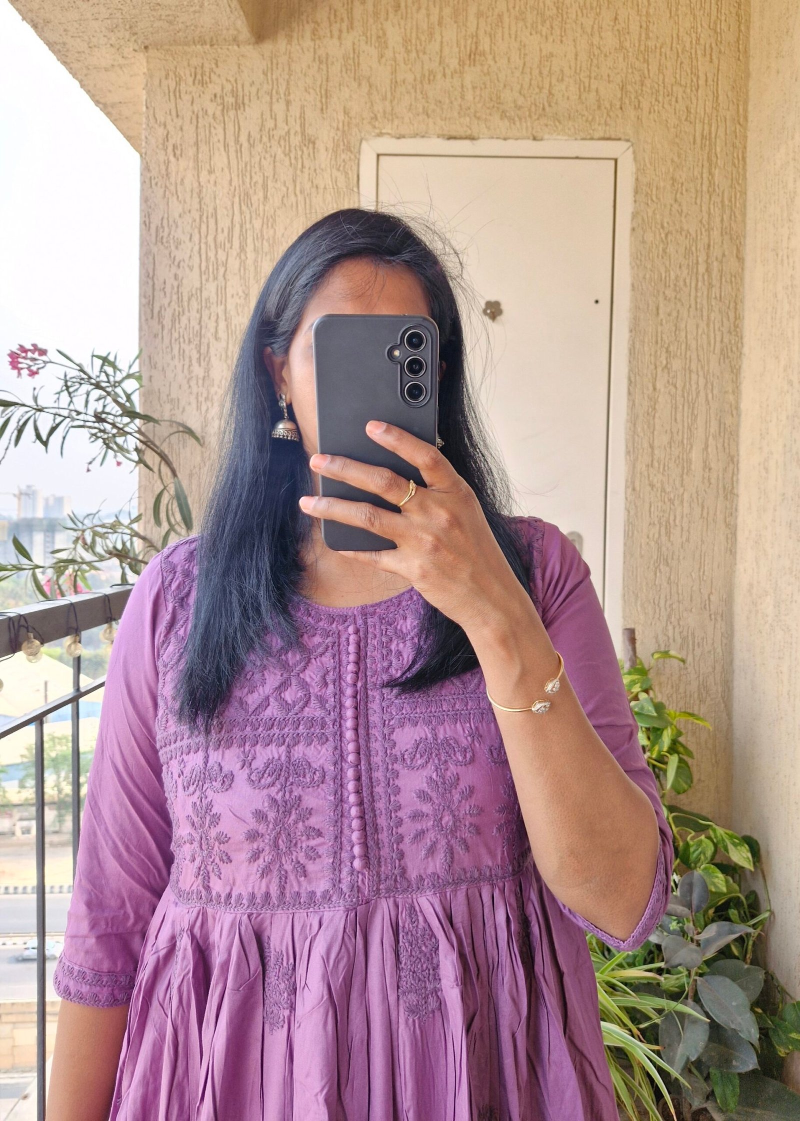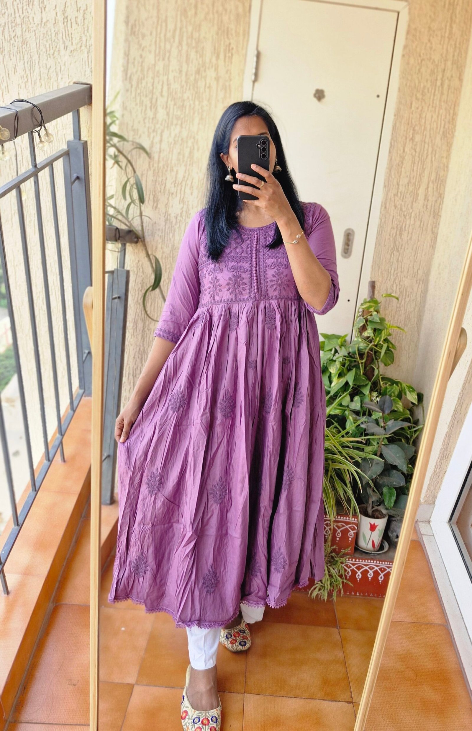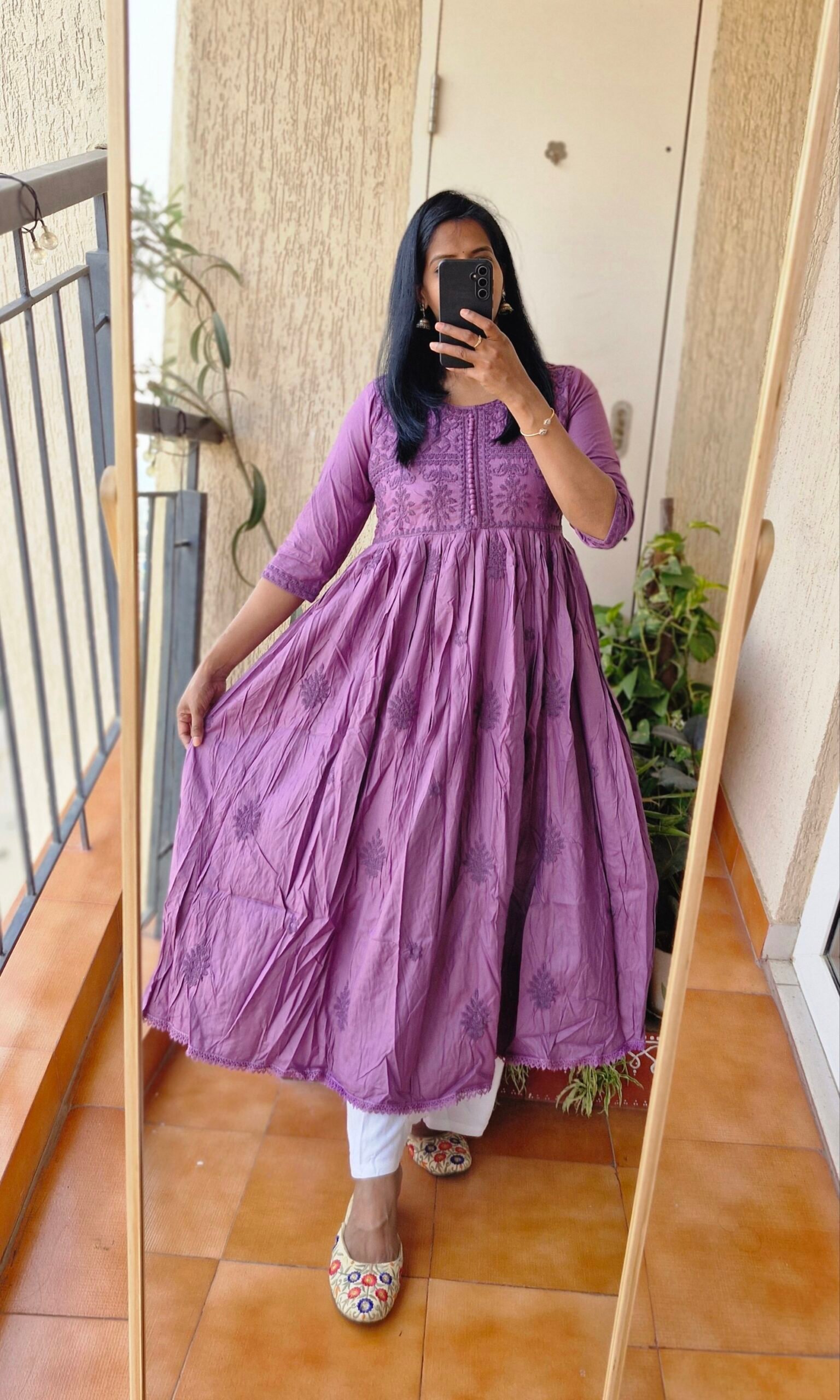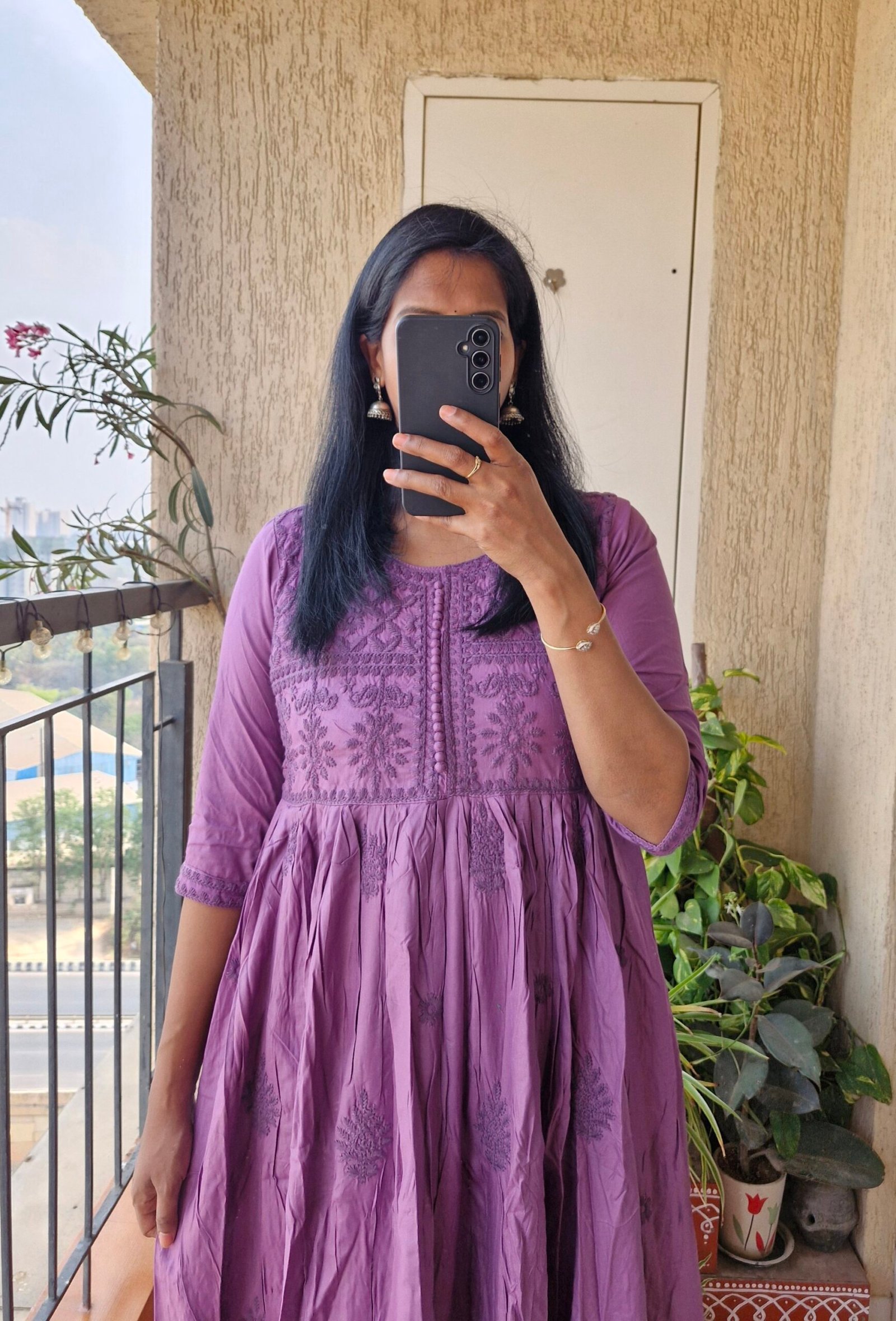 Purple solid rayon chikankari dress.Purple solid rayon chikankari dress.