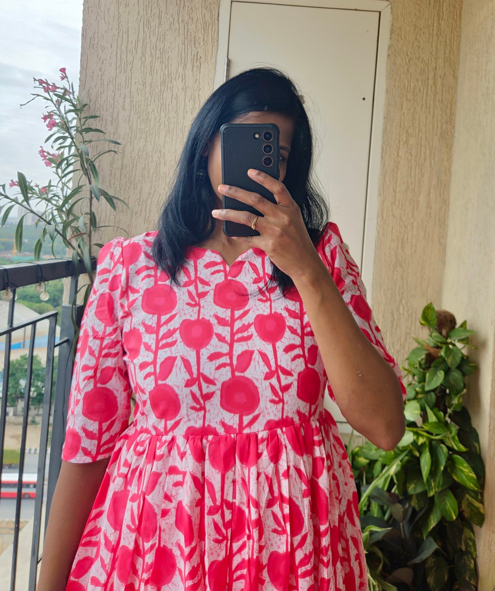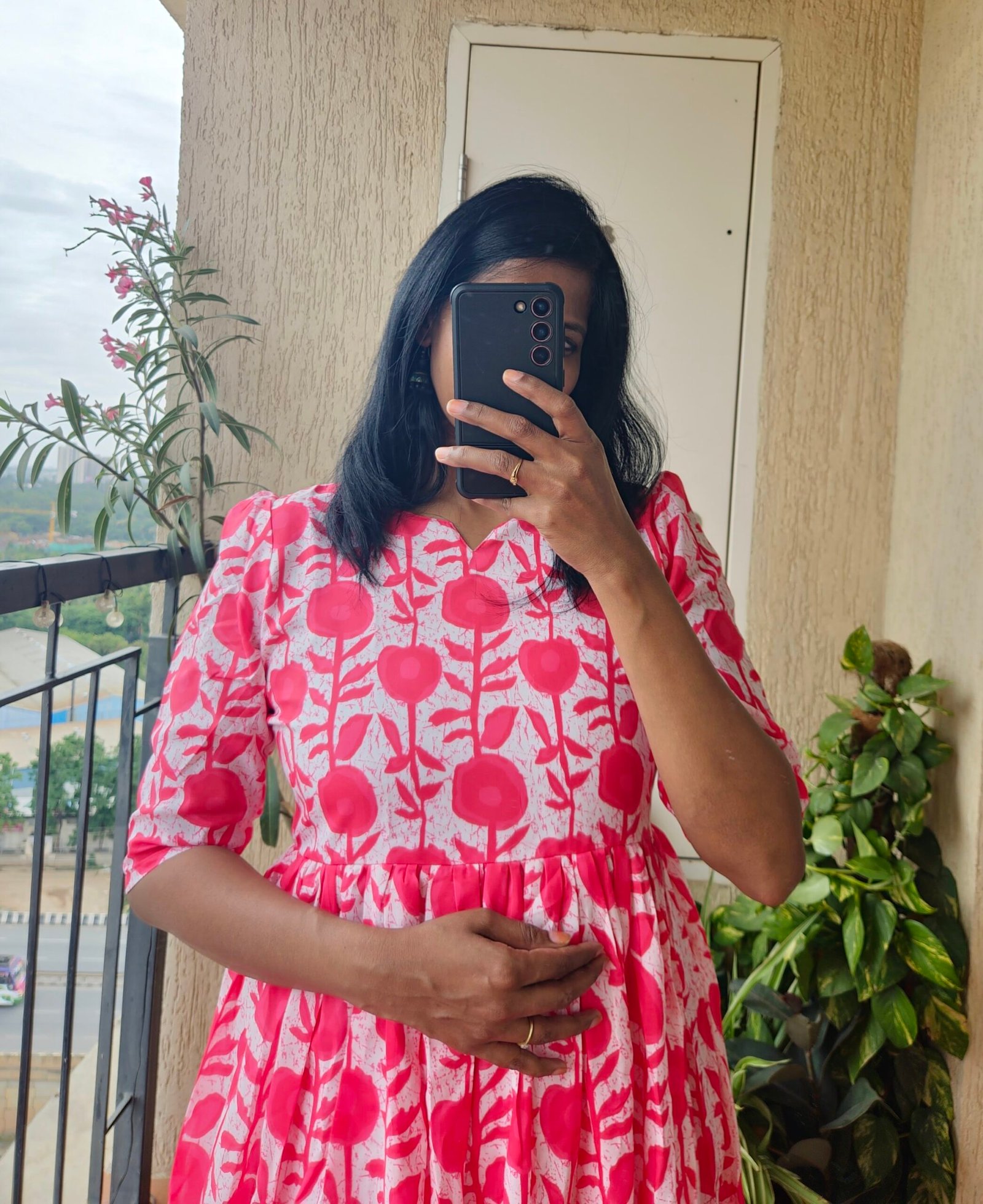Pink Maslin frock witj batique print. Comes with full lining. Lengtth 47 inches.