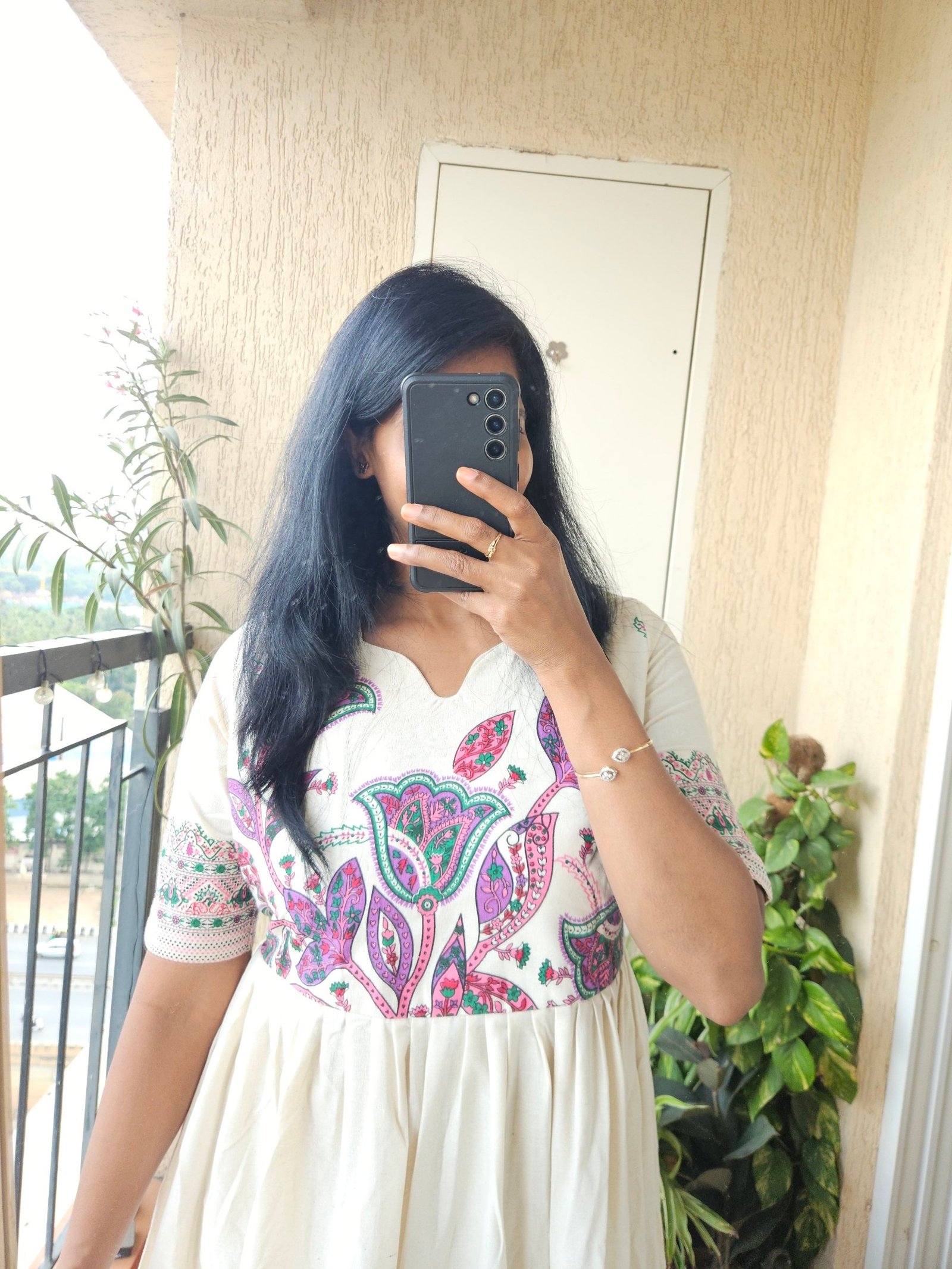 Khadi purple maxi gown comes with a pocket on oneside. Length – 53 inches.