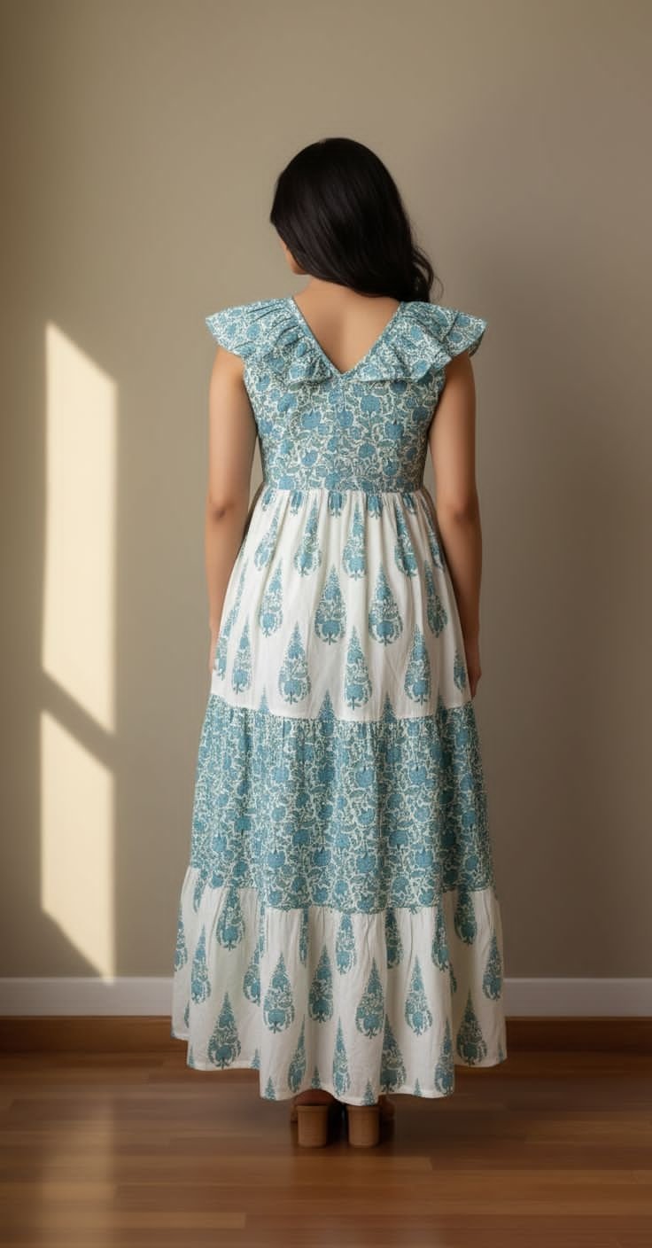 Be the first to review “La La Long Sky blue floral maxi cotton dress”