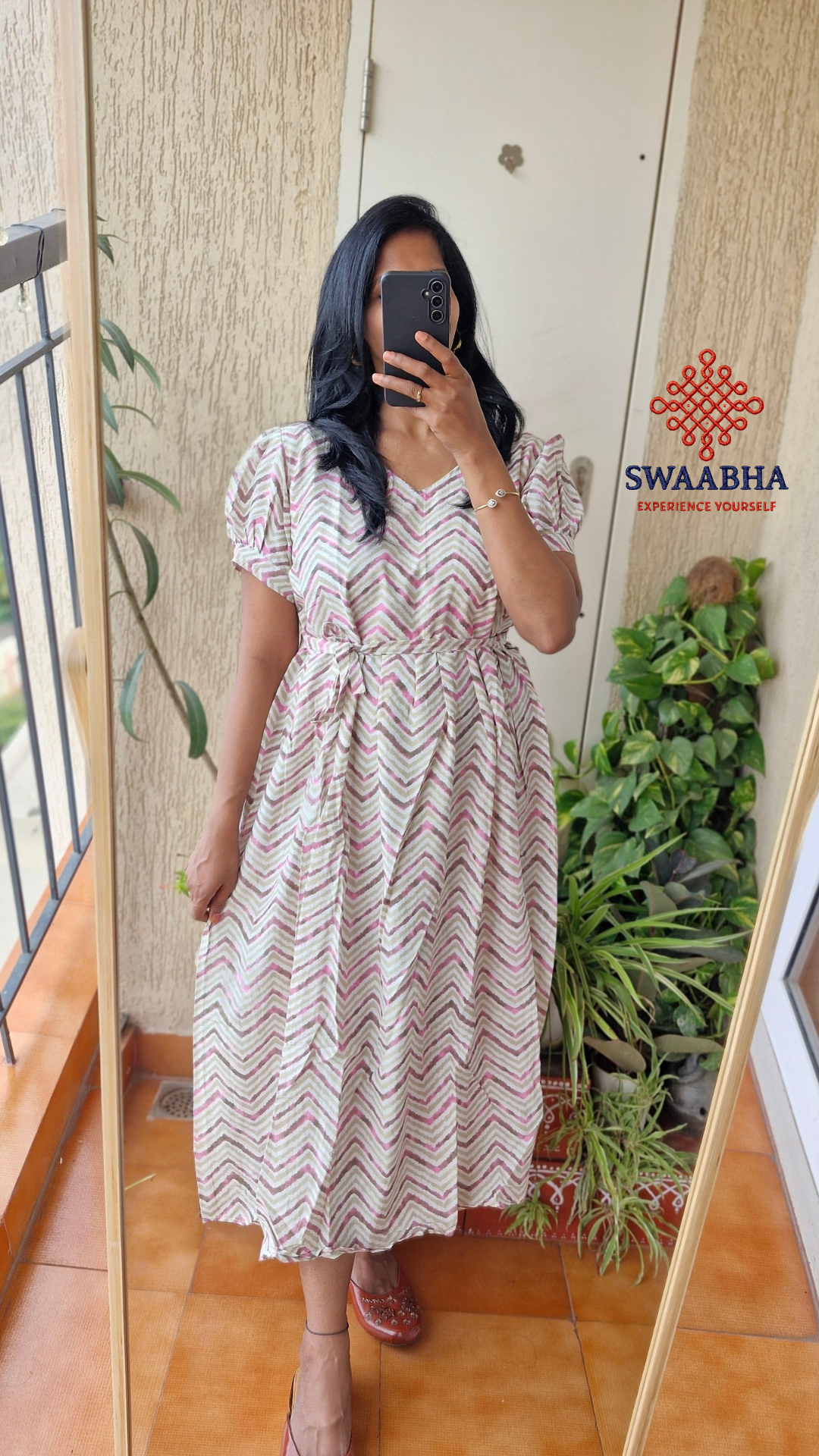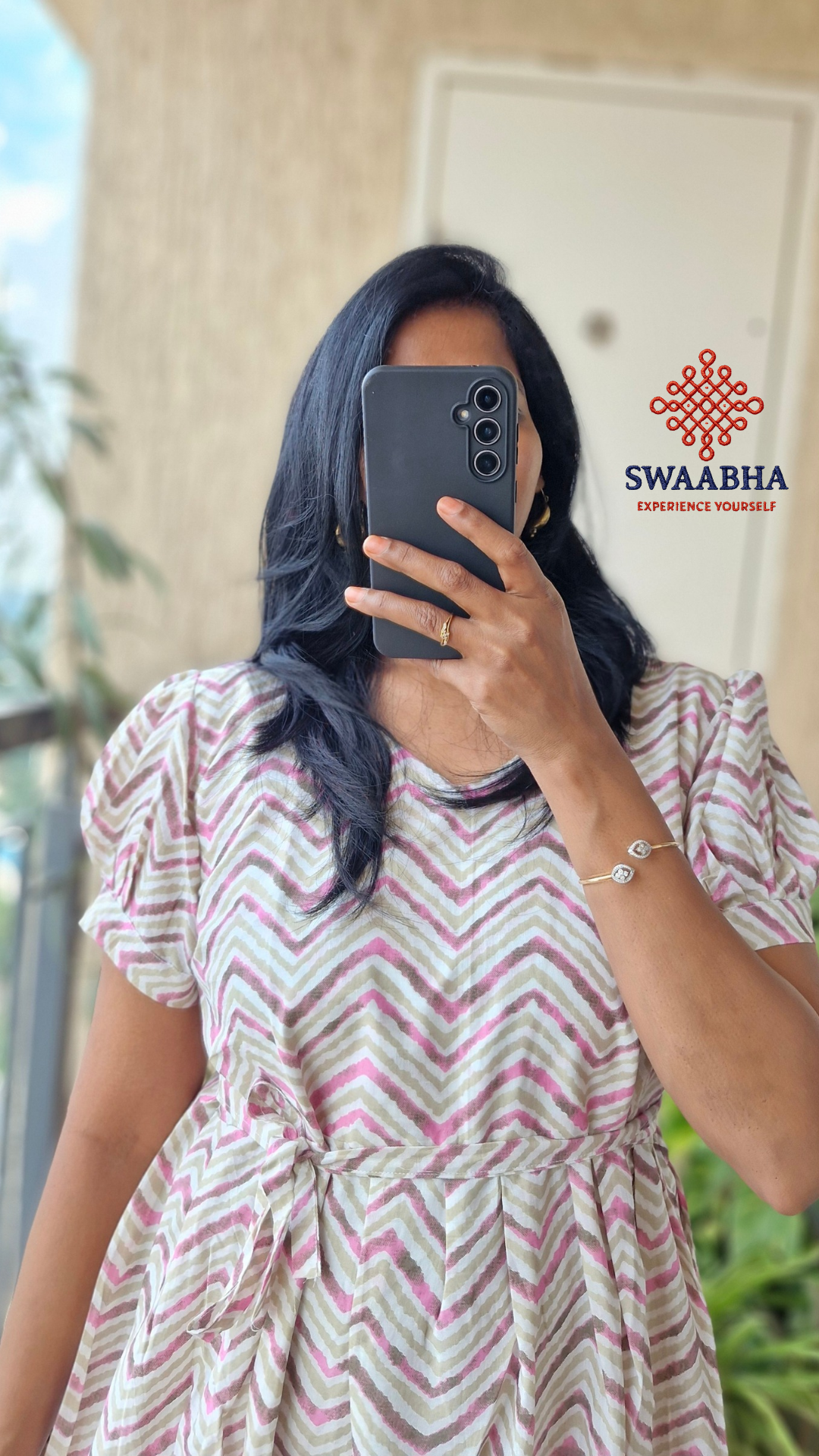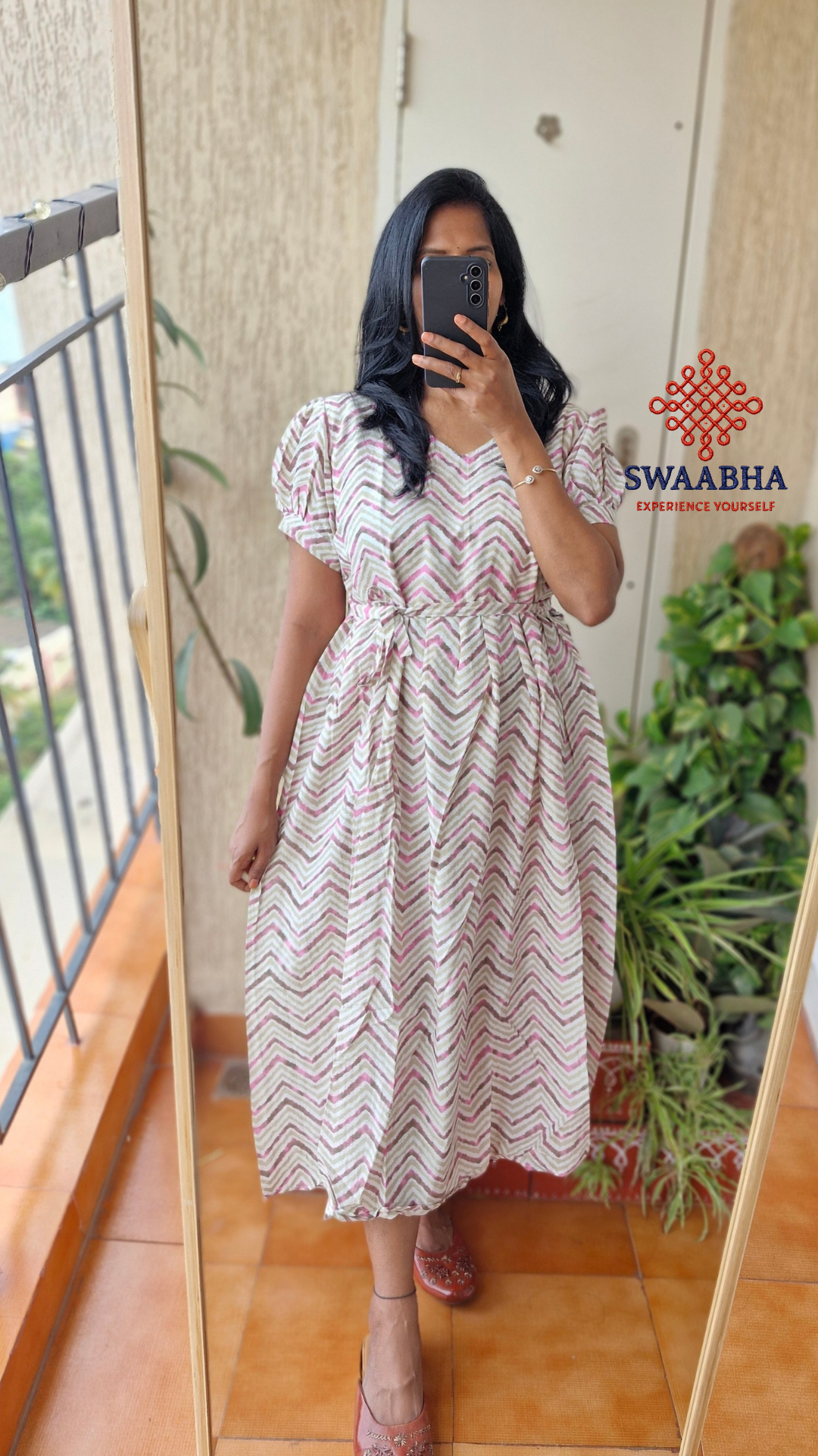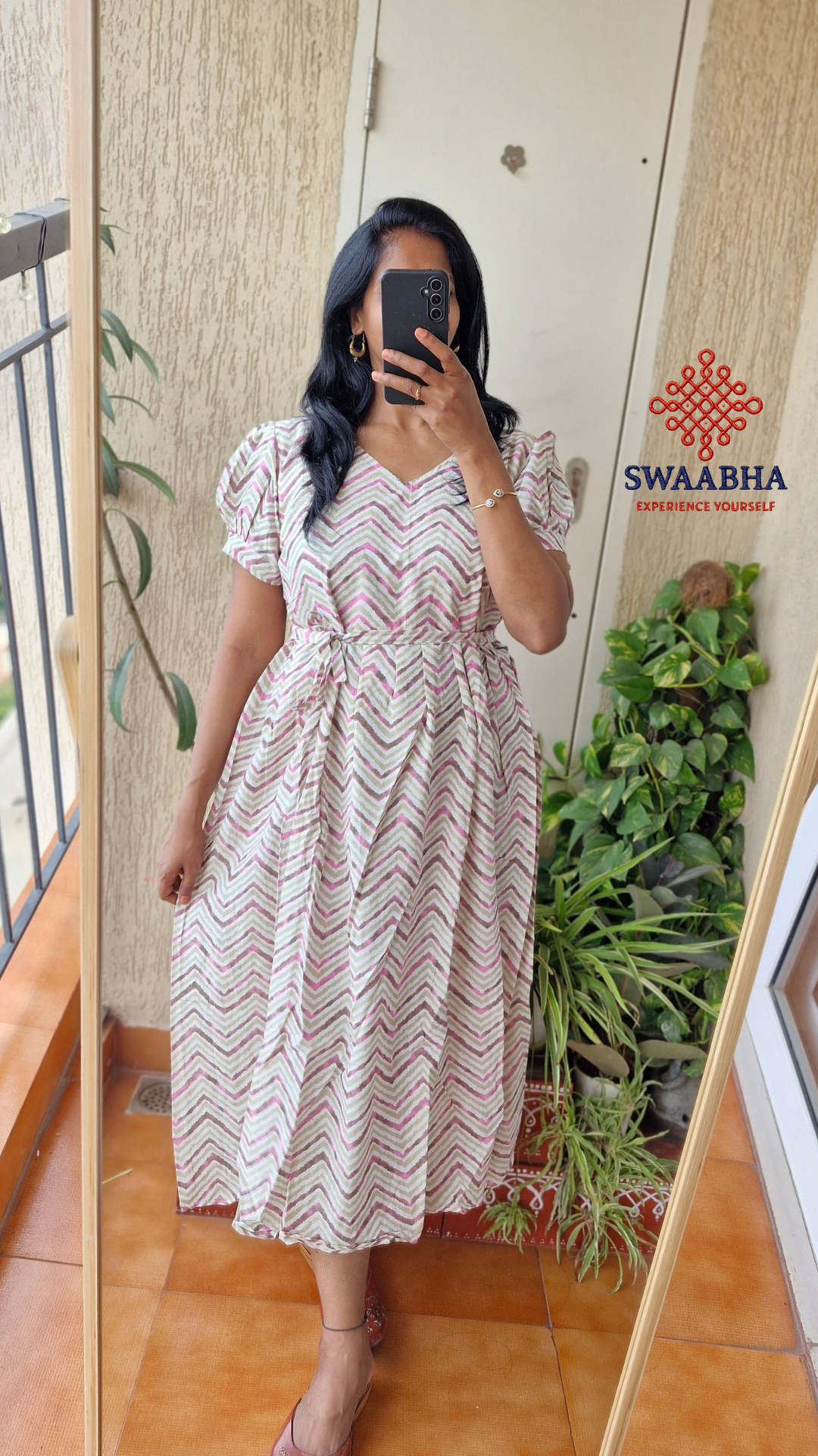 Beautiful striped mul cotton gown comes with a length of 49 inches.Comes with a back tieup.
