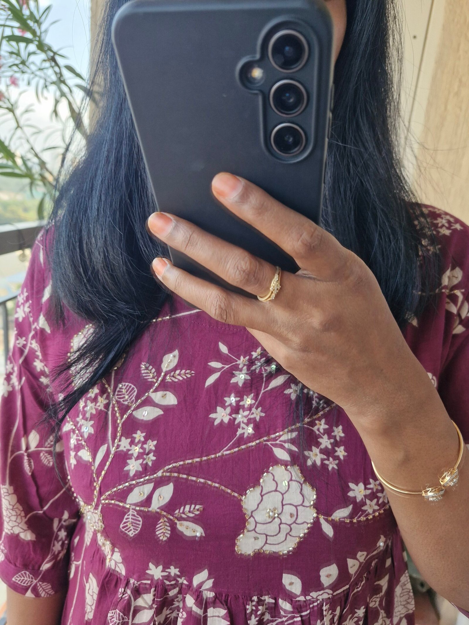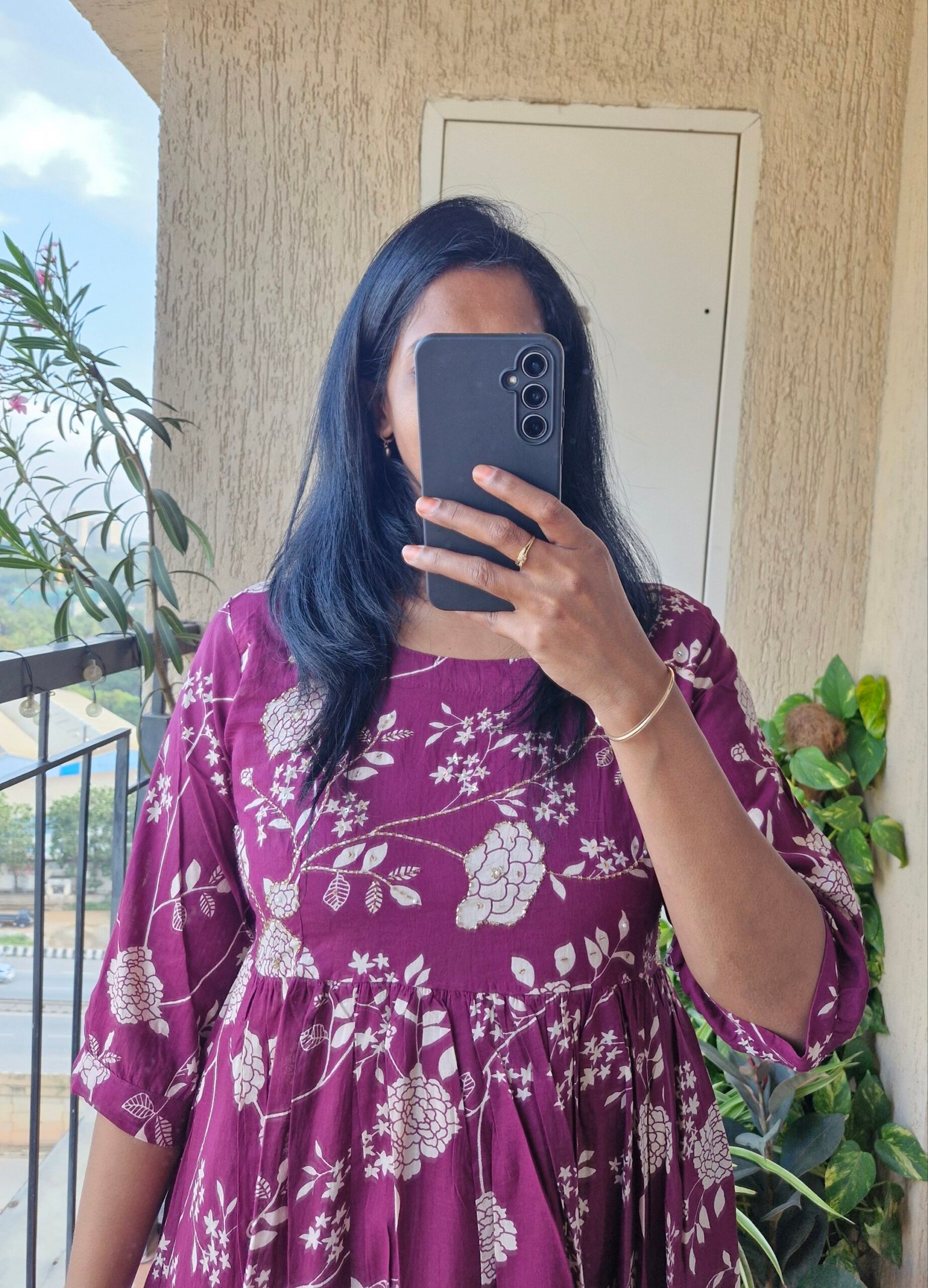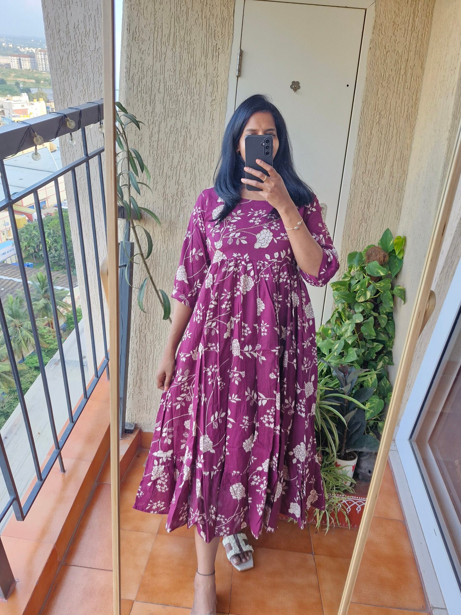 Beautiful wine color mul cotton dress comes with a katha sequence work on yoke part super comfortable and soft comes with the length 46 inches.Comes with a pocket.